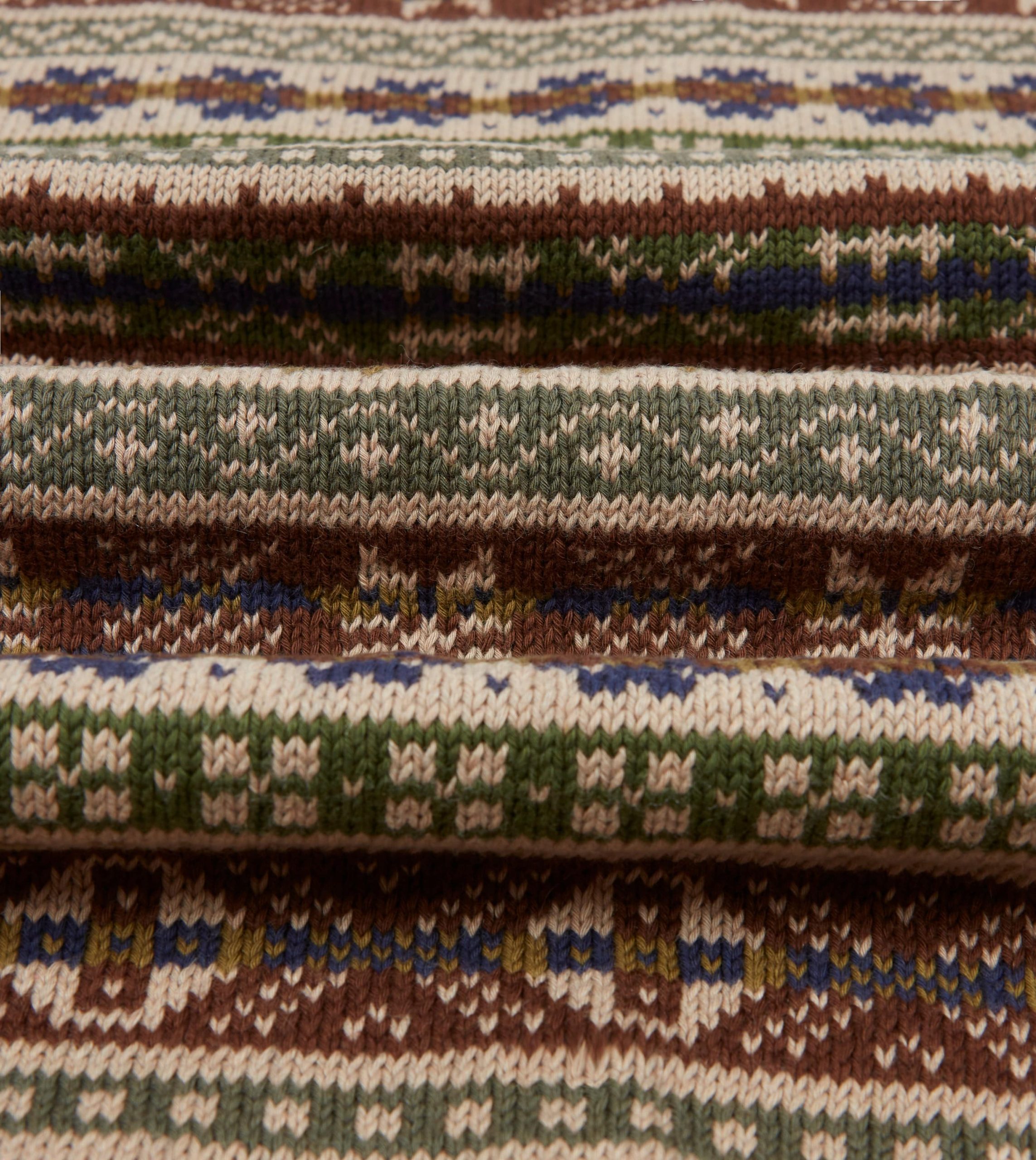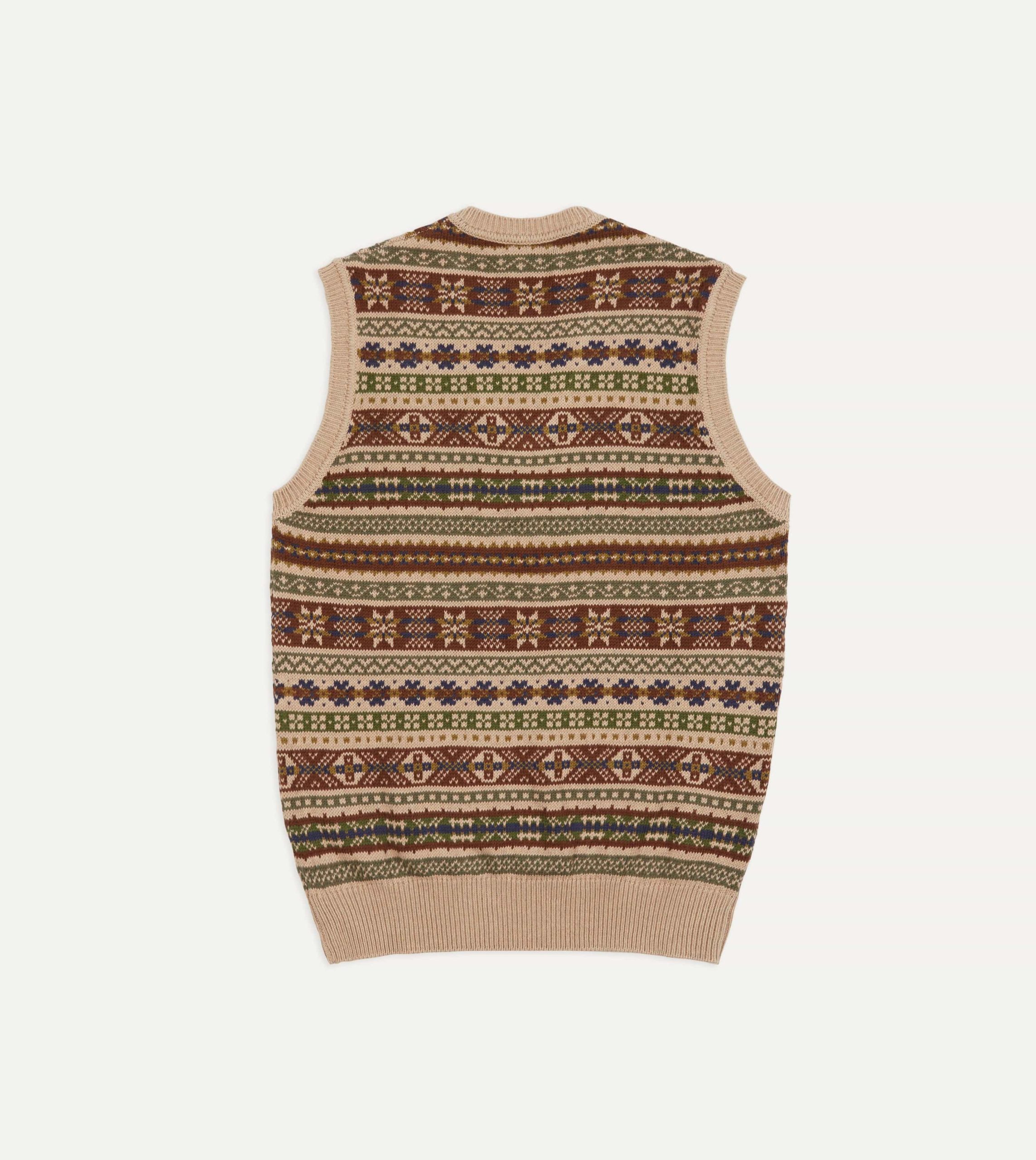 A Summer variation on an enduring piece of classic British knitwear. Woven from a blend of cotton and cashmere. the vest features a traditional Fair Isle design.
