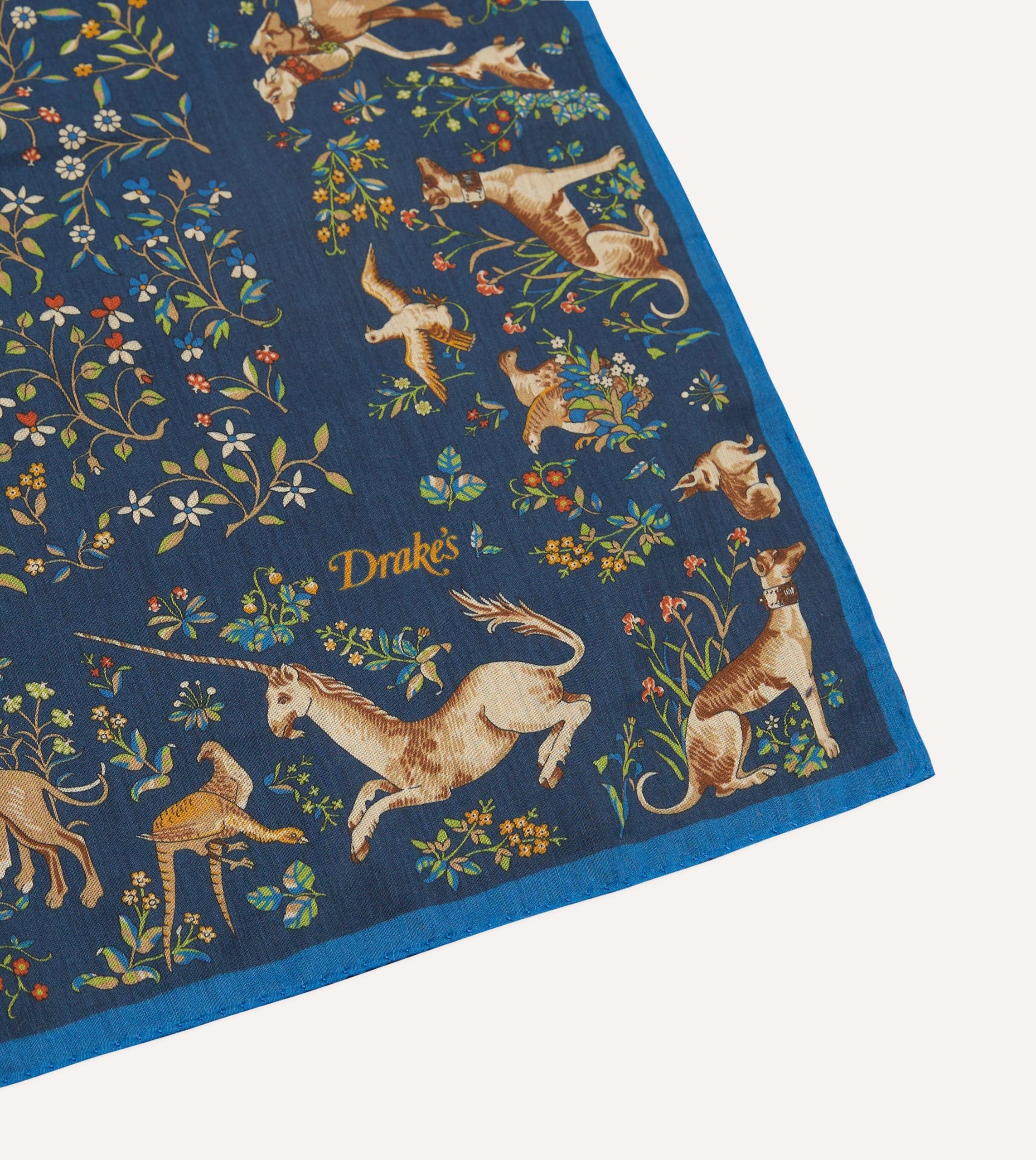 Taken from our extensive design archive. this unicorn garden motif has been vivdly applied to a blend of cotton and silk. perfect for introducing a subtle and sophisticated dash of pattern to one’s ensemble.