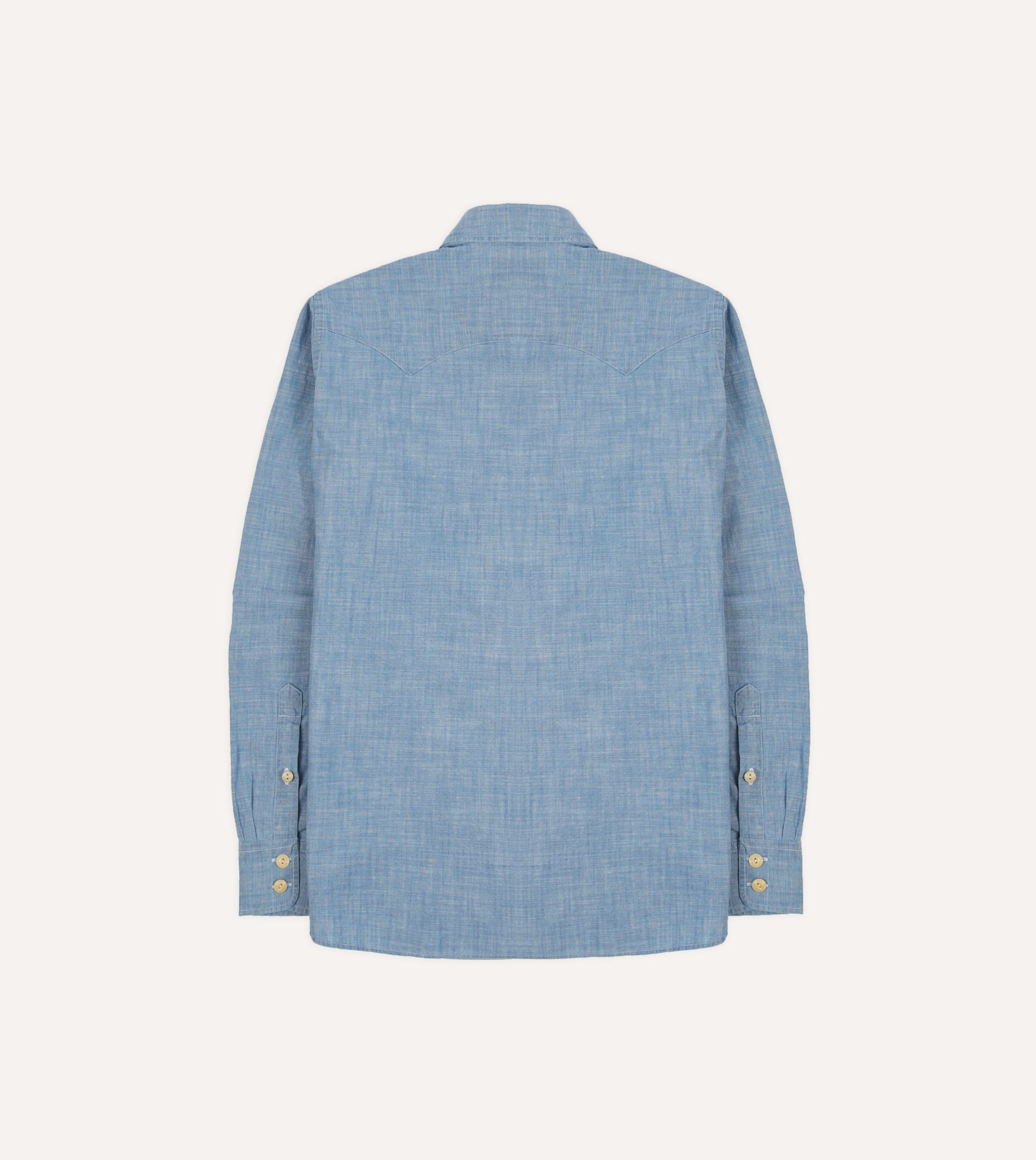 Constructed from a 100% cotton chambray fabric. this hardy bit of shirting will develop a patina and get better with wear over the years. if not decades.