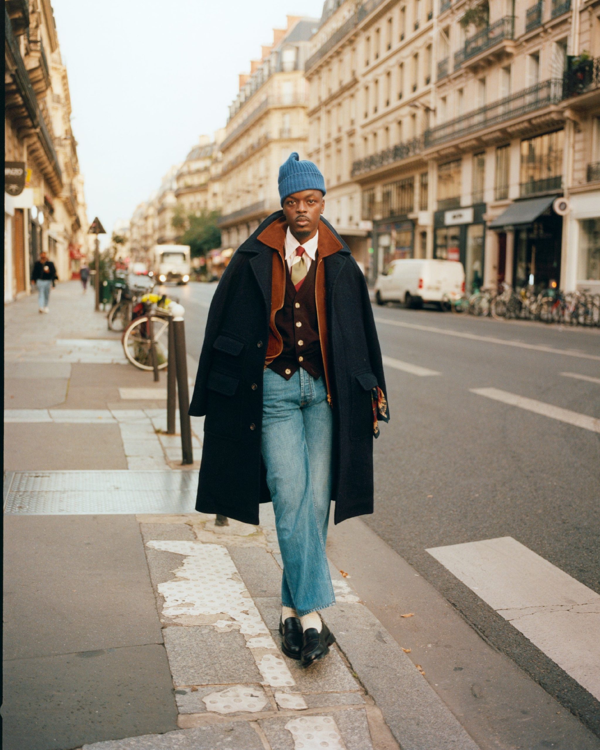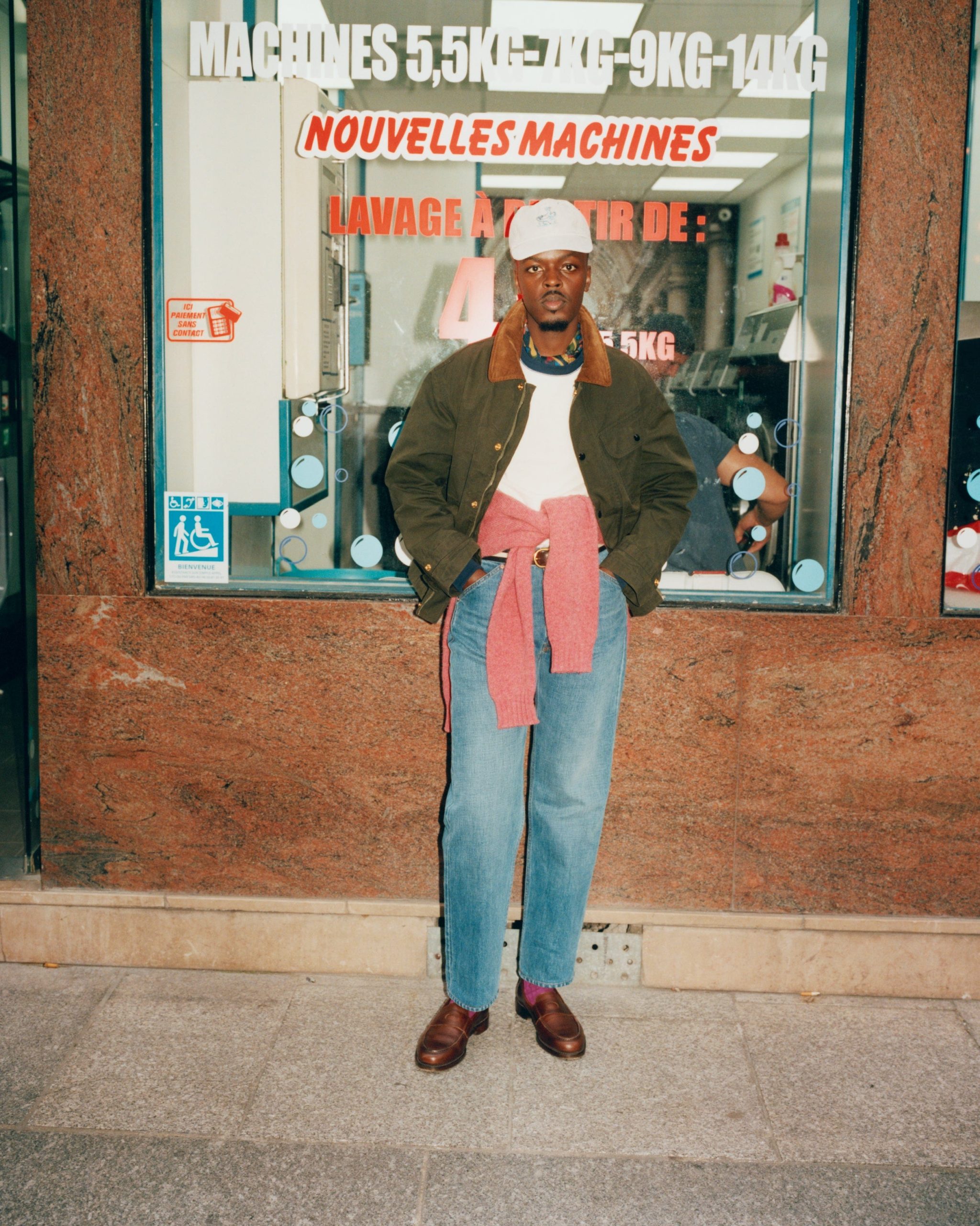Cut with a slightly higher rise and a relaxed. tapered fit. the jeans are finished with copper rivets and a unique slanted pocket design.