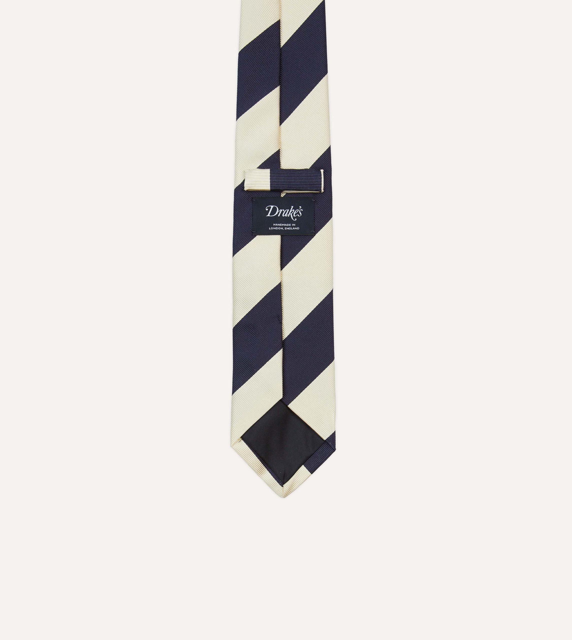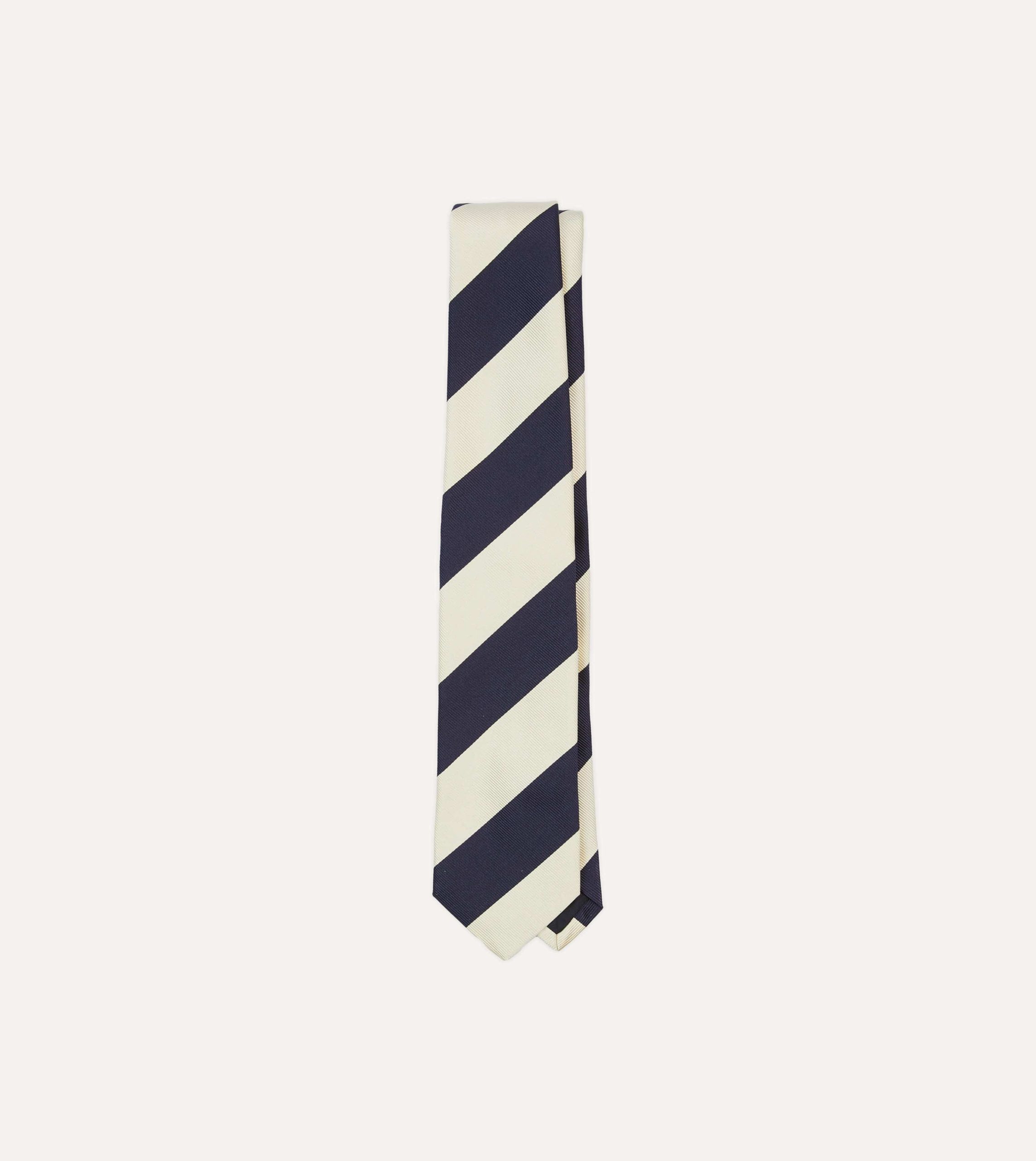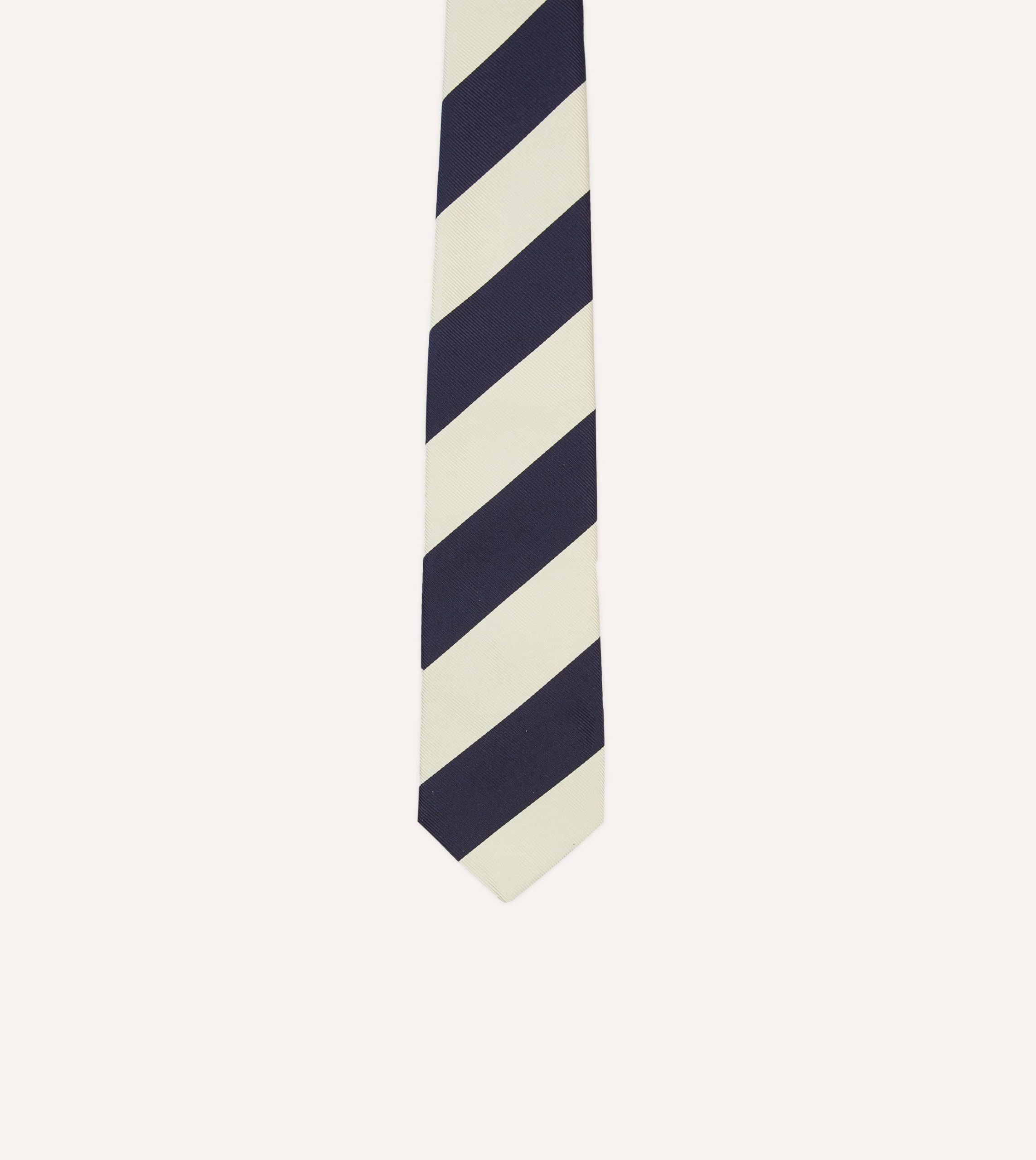 Ecru and Navy Block Stripe Repp Silk Tipped Tie