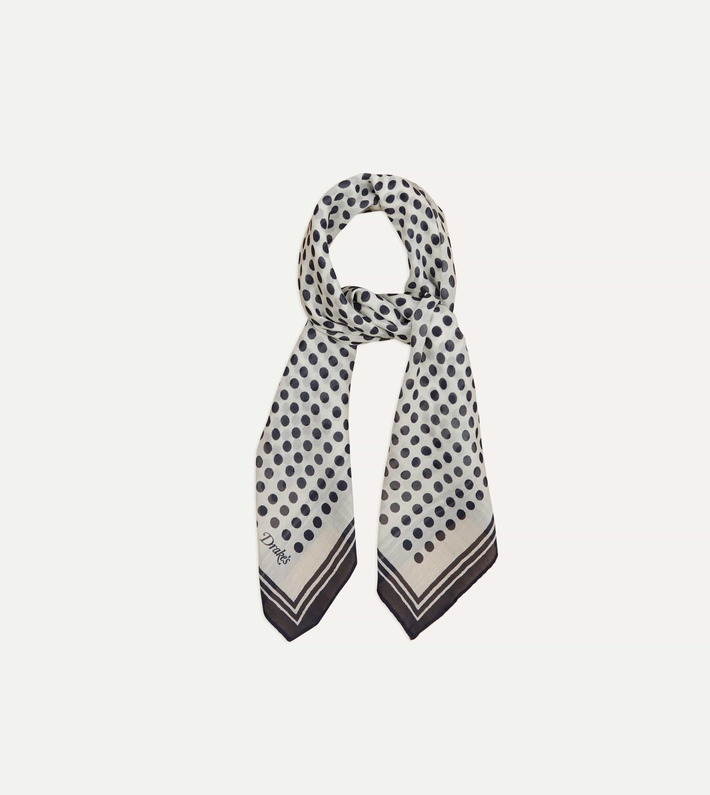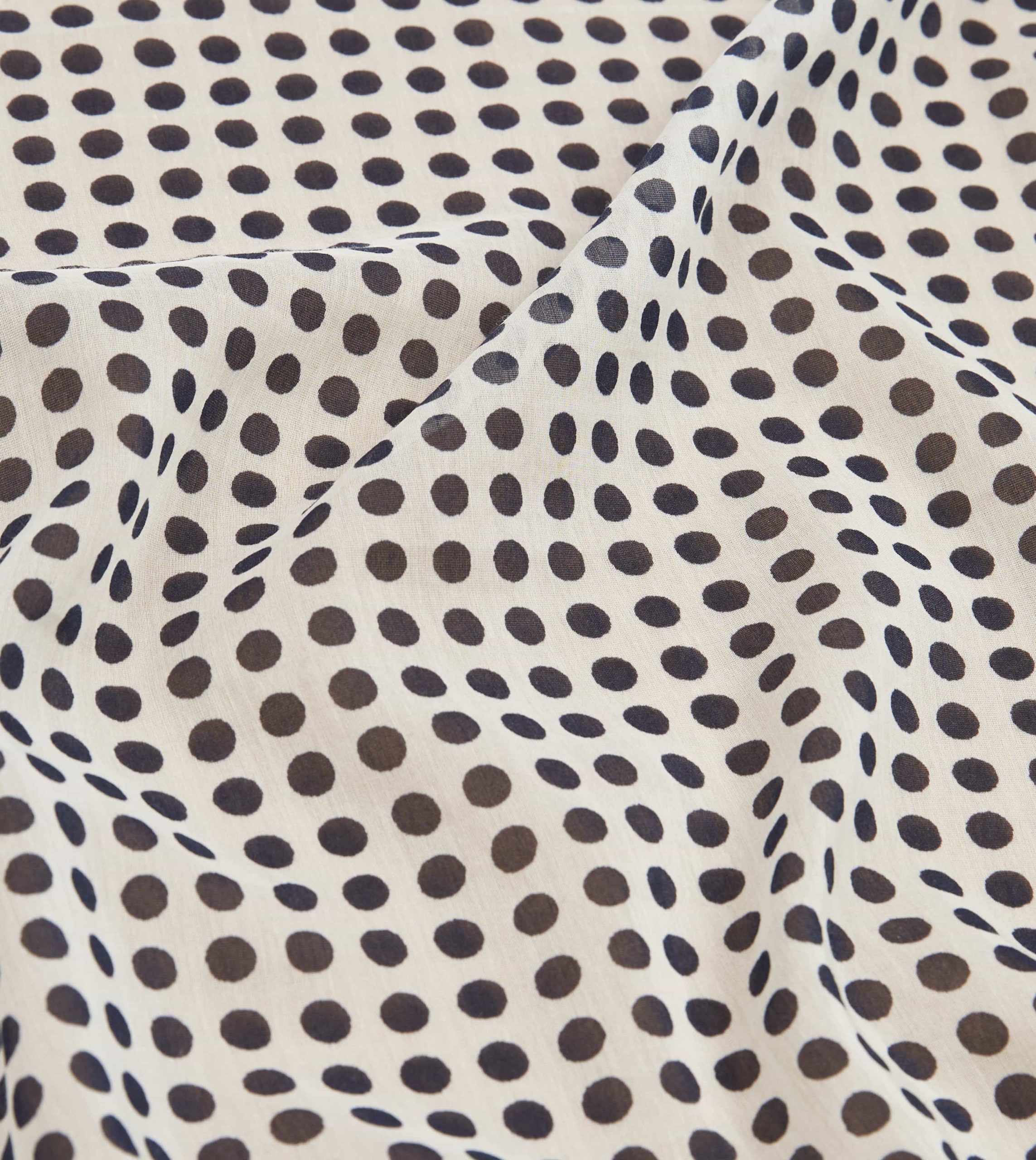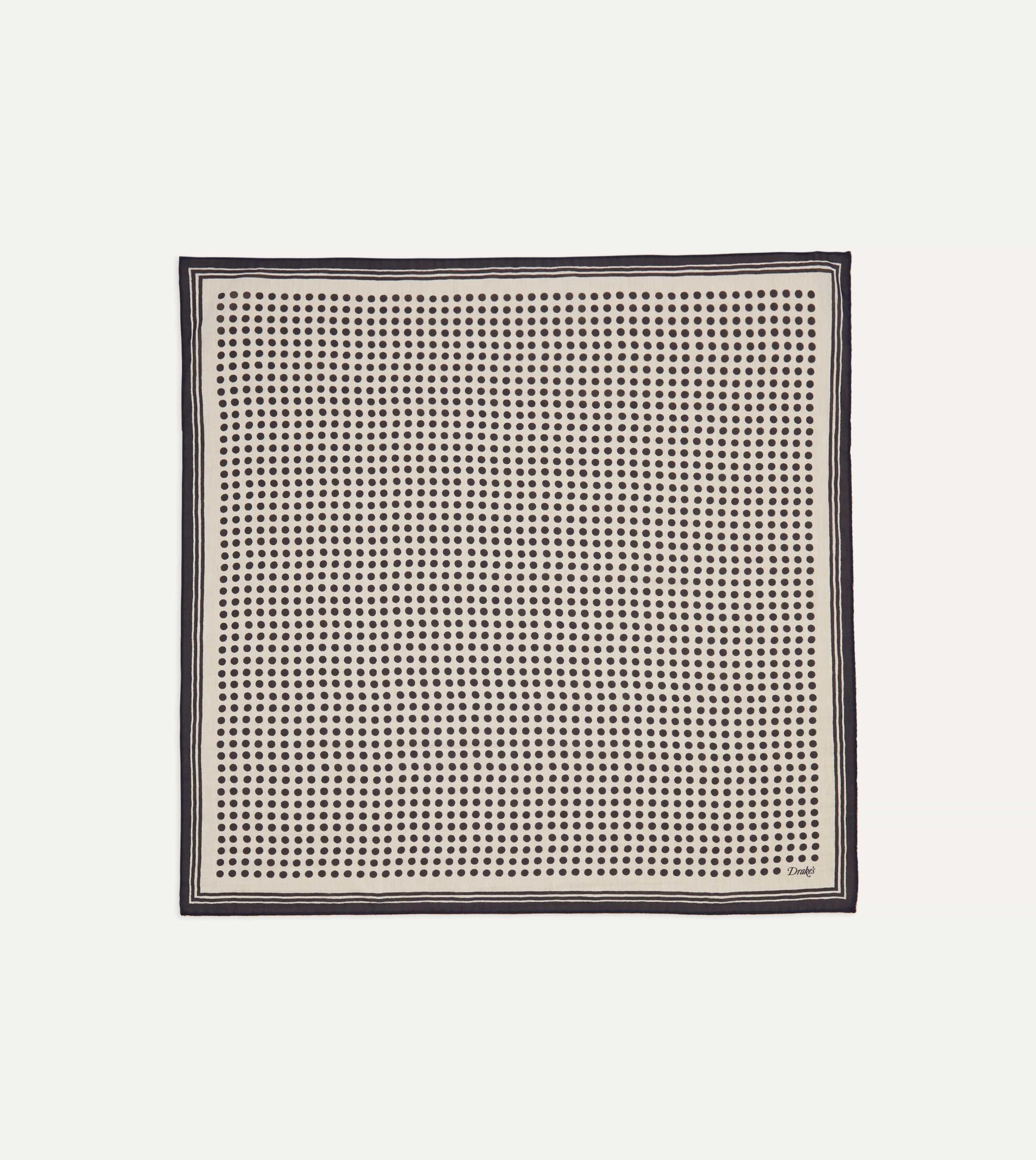 Ecru and Navy Spots Print Silk-Cotton Bandana
