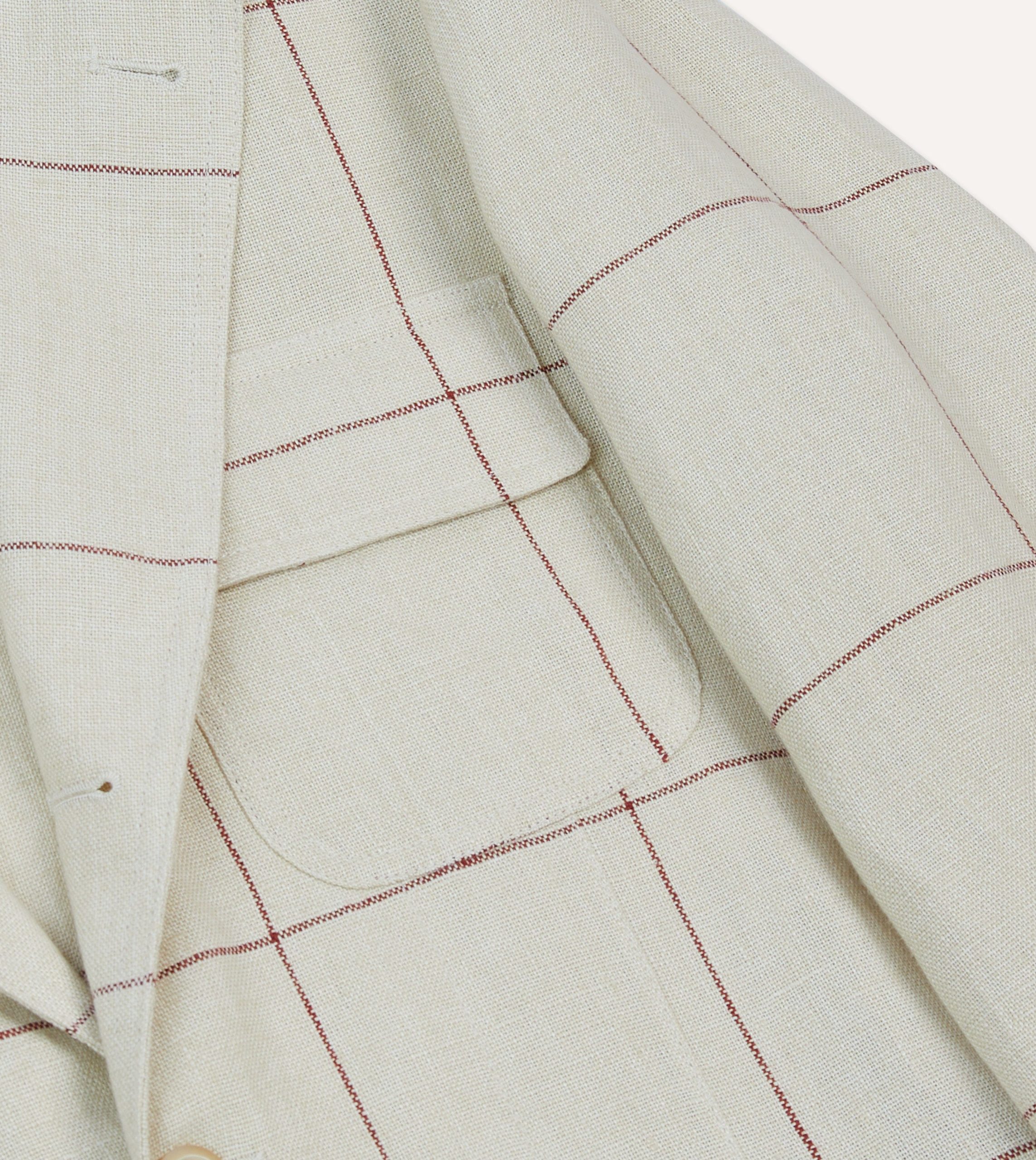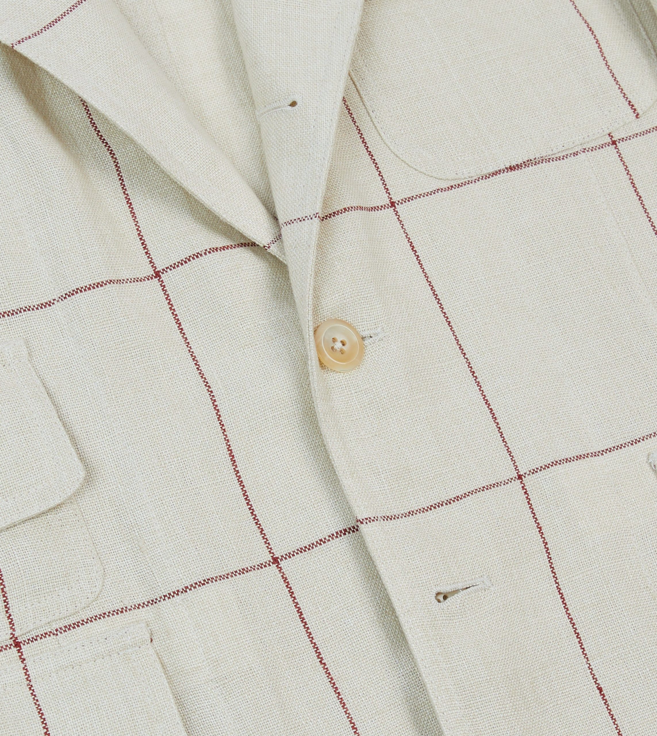 While there are a great many ways to approach warm weather dressing. really it’s linen tailoring that always gets the last word on the subject of summer style. and here is no different. with a 10.9oz Italian linen cloth and a subtle. custom overcheck design.