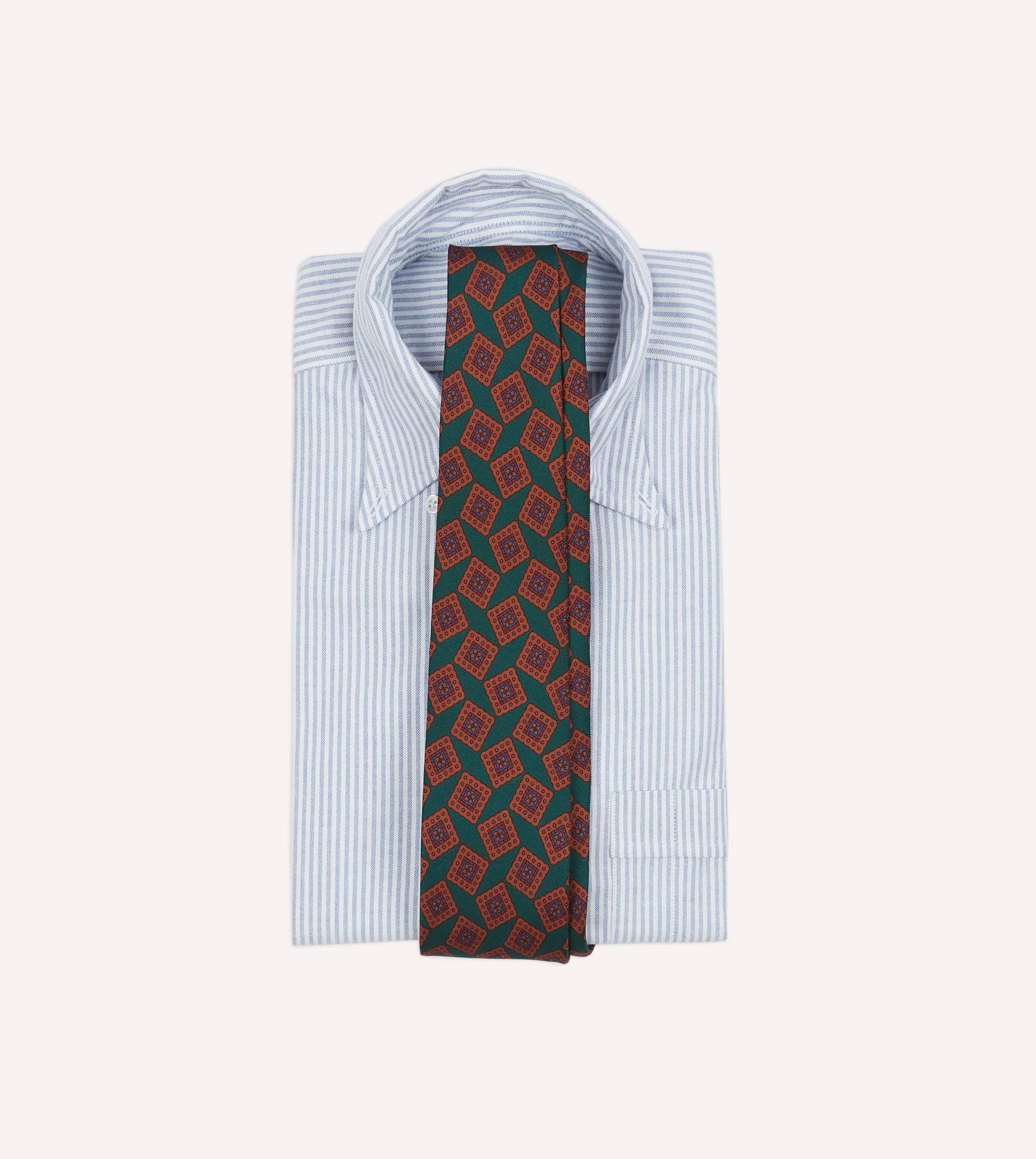 An ornate repeating motif simply exudes elegance. particularly when printed on pure silk and hand rolled by our dedicated tiemakers in the heart of east London.