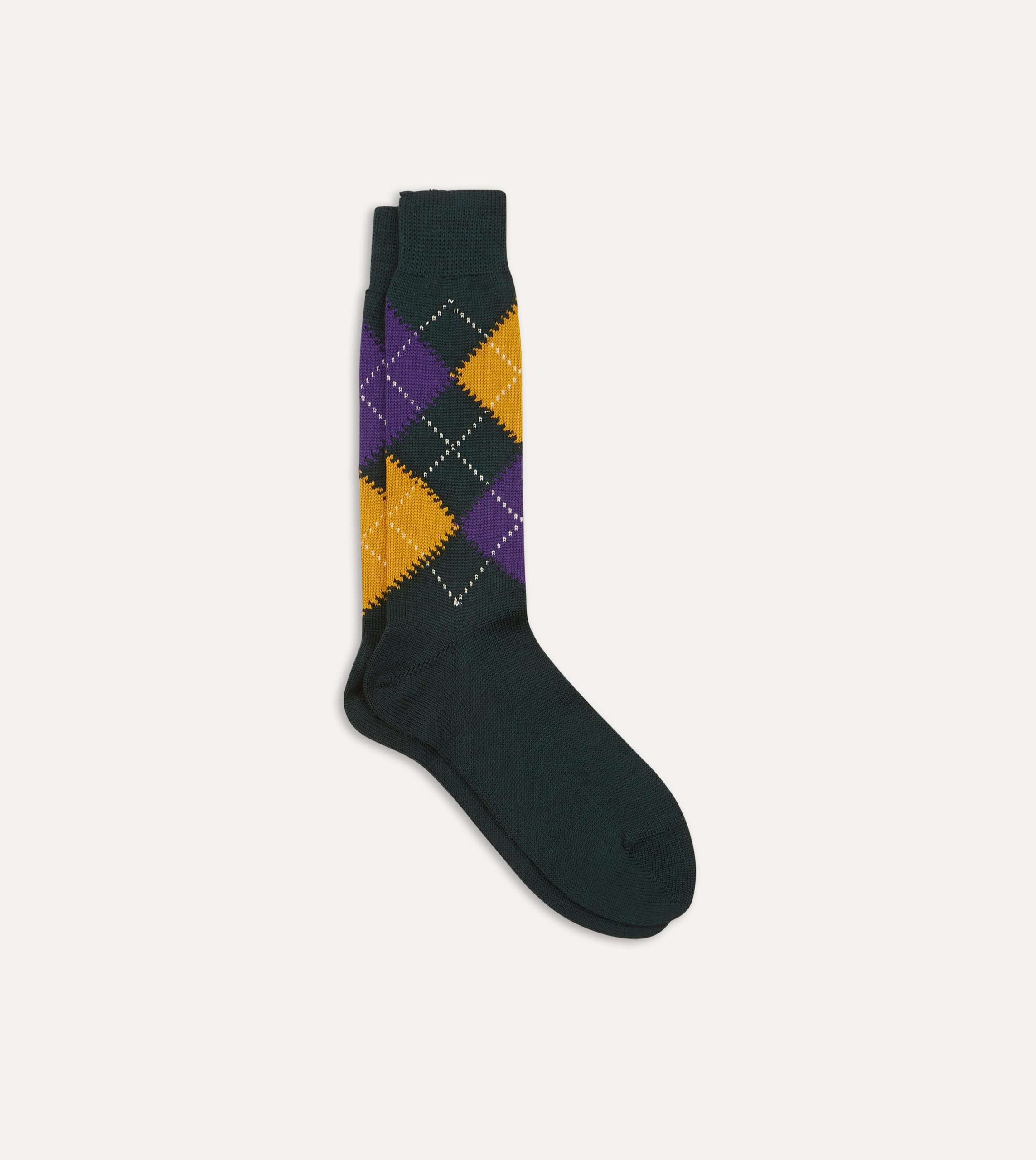 A really good pair of socks is the perfect finishing touch to any outfit. and this season is no exception. These socks are knitted in Wales from a machine washable wool-cotton blend. and feature a traditional argyle design.