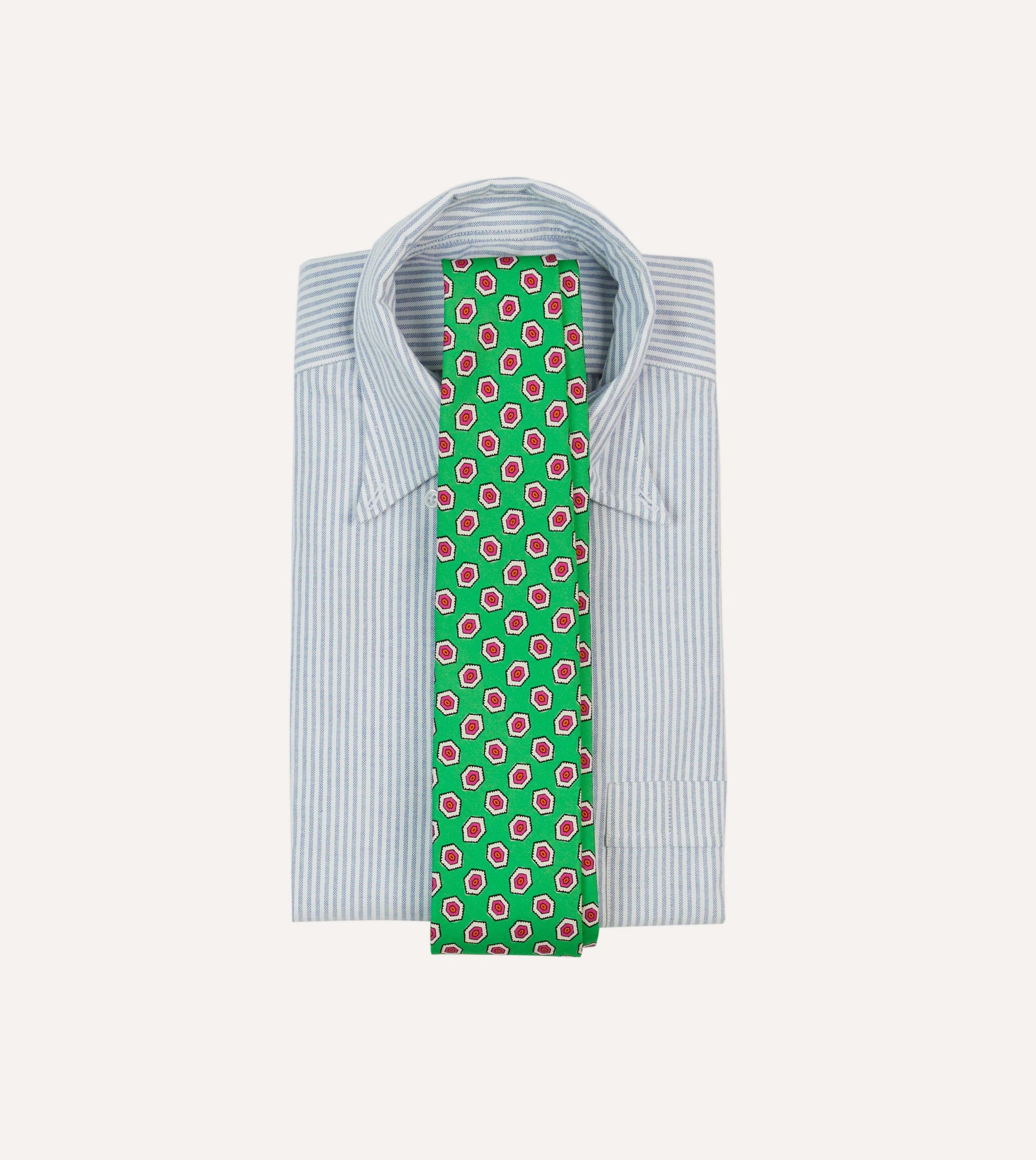 Green Hexagon Tile Print Silk Self-Tipped Tie