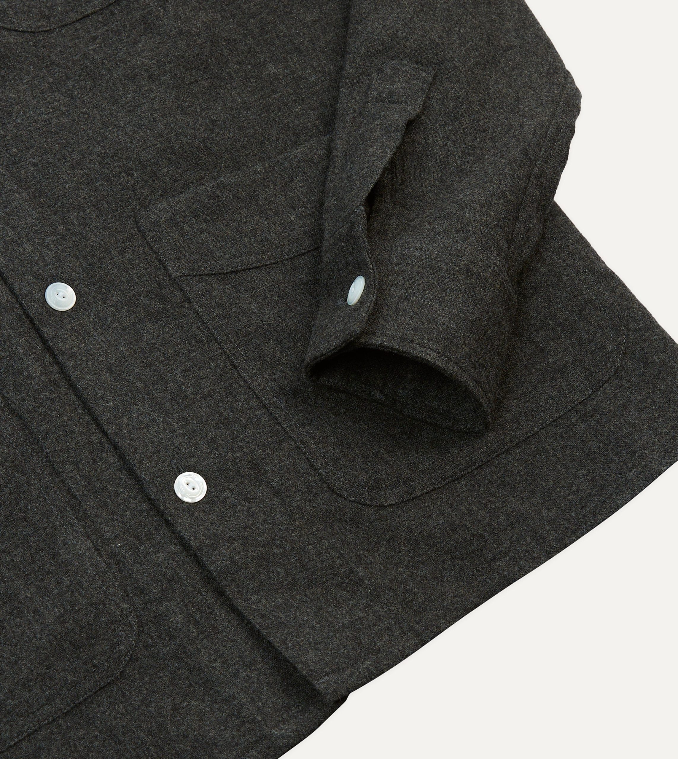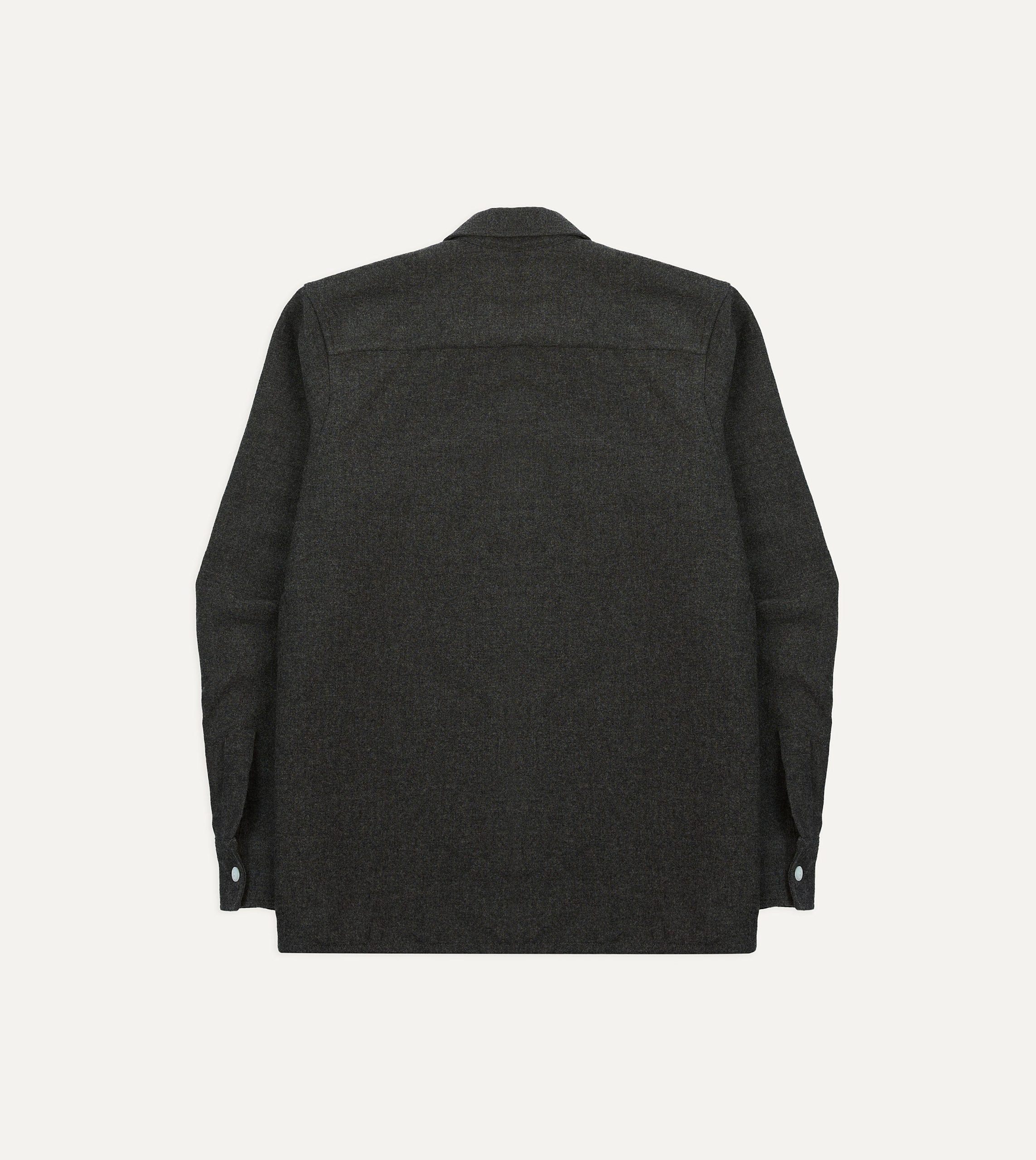 Grey Wool Four-Pocket Camp Collar Work Shirt