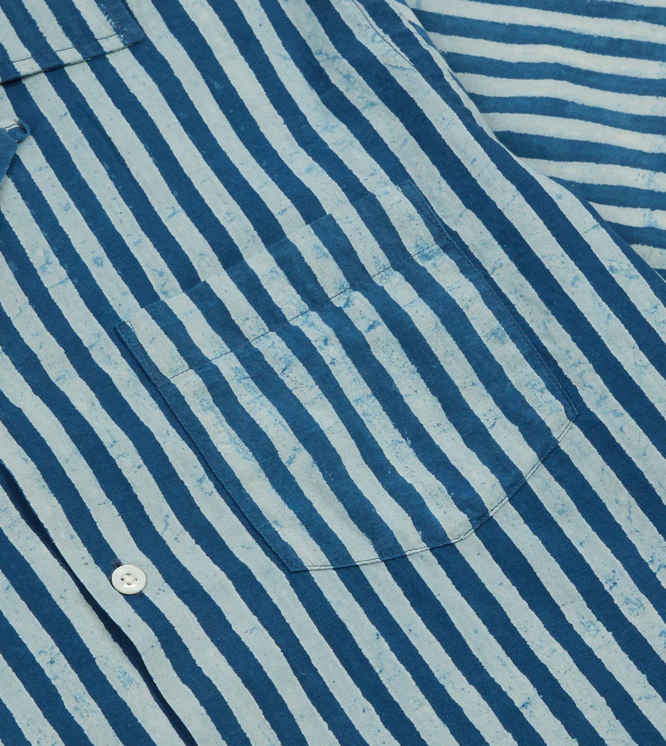 Indigo Stripe Block Print Cotton Camp Collar Short Sleeve Shirt