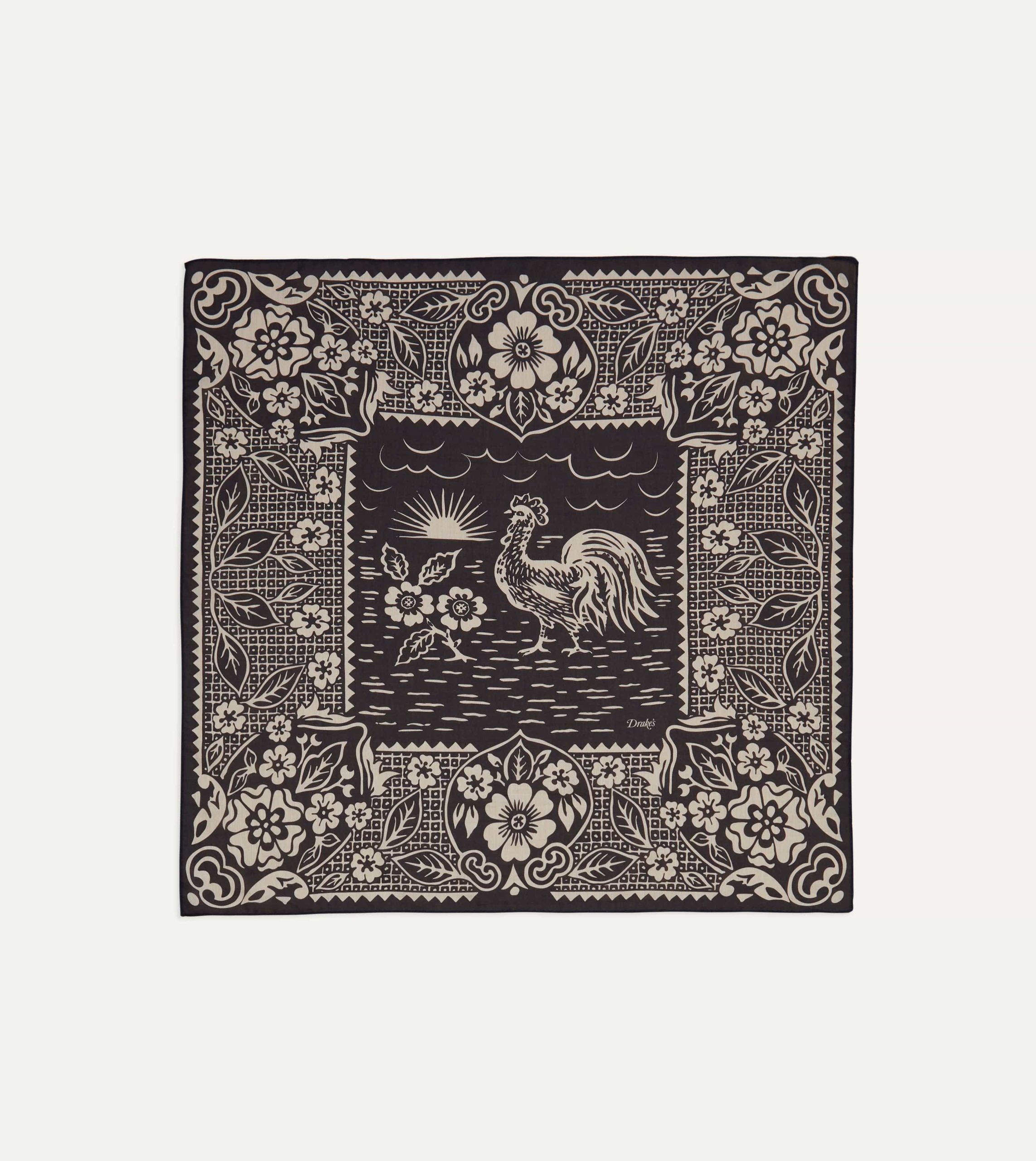 Taken from our extensive design archive. this cockerel motif has been vividly applied to a blend of cotton and silk for a elegant and comfortable piece of neckwear.