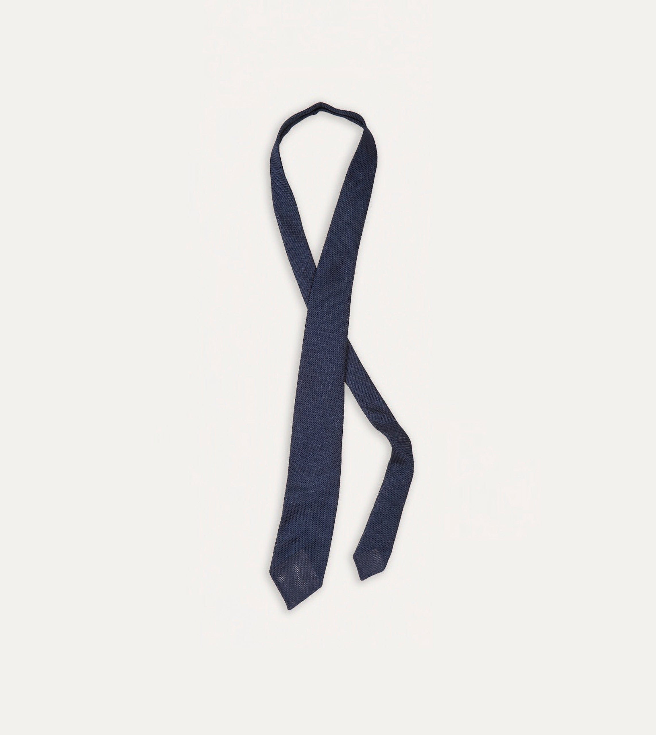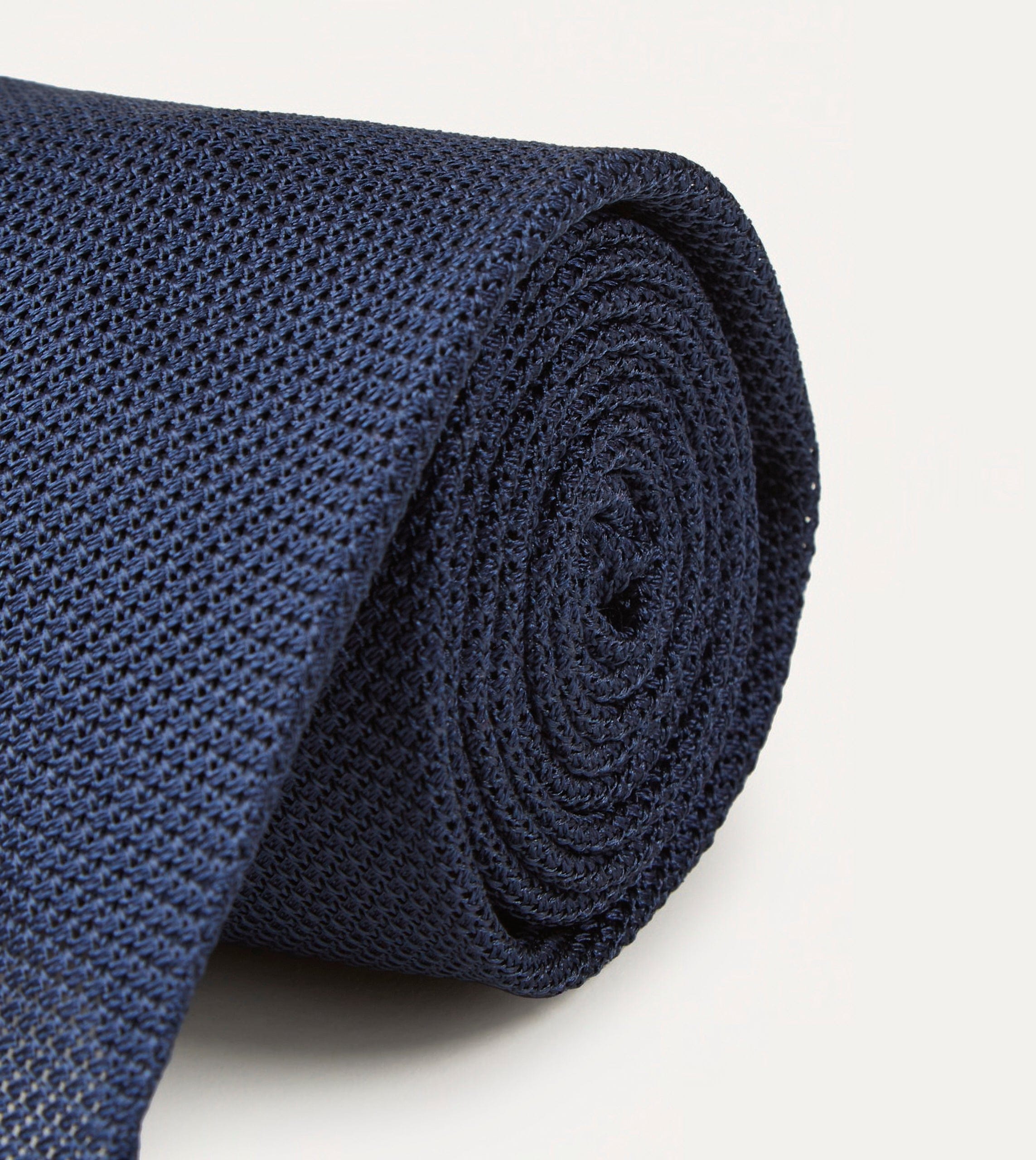 Navy Fine Woven Grenadine Silk Hand Rolled Tie