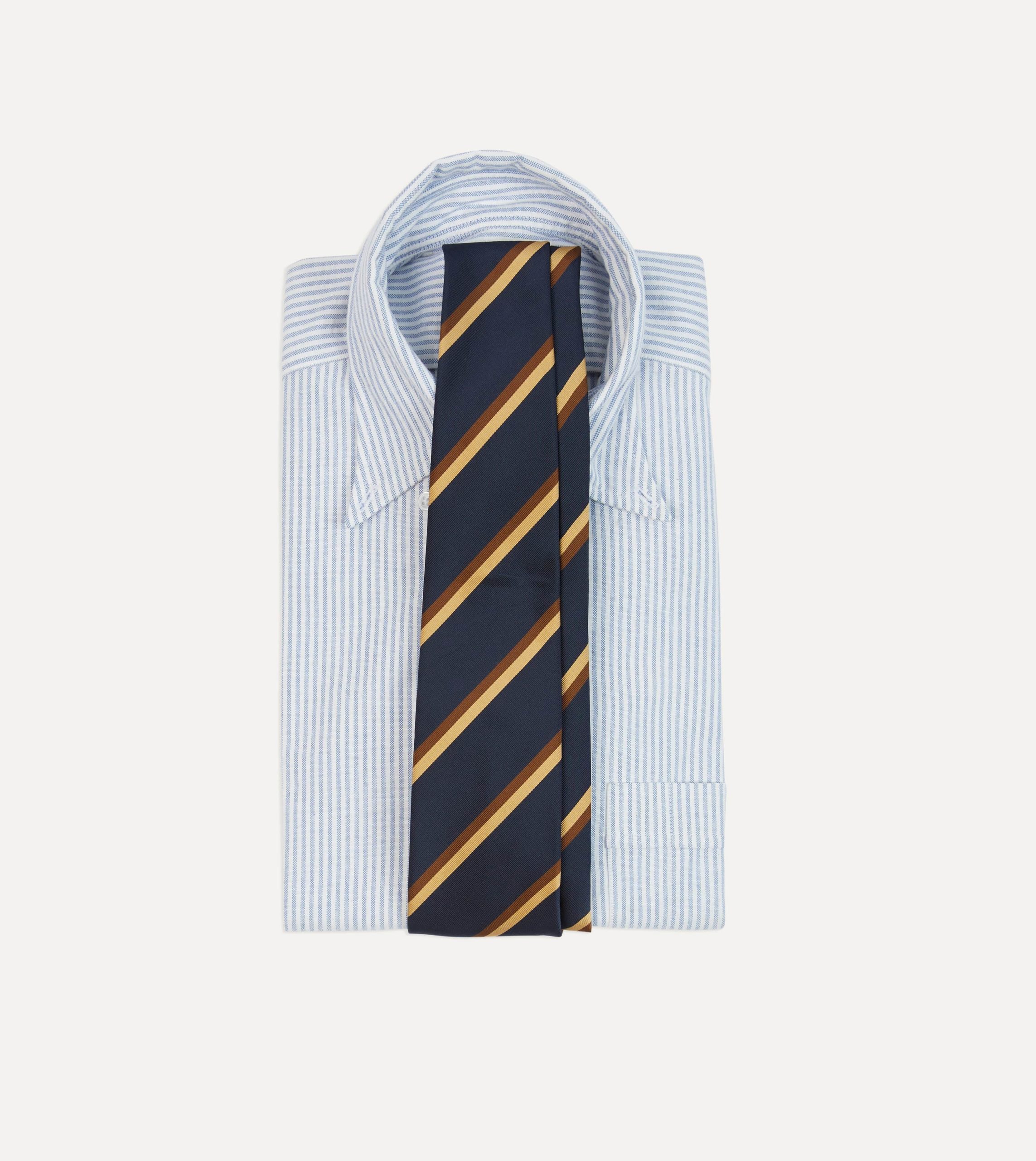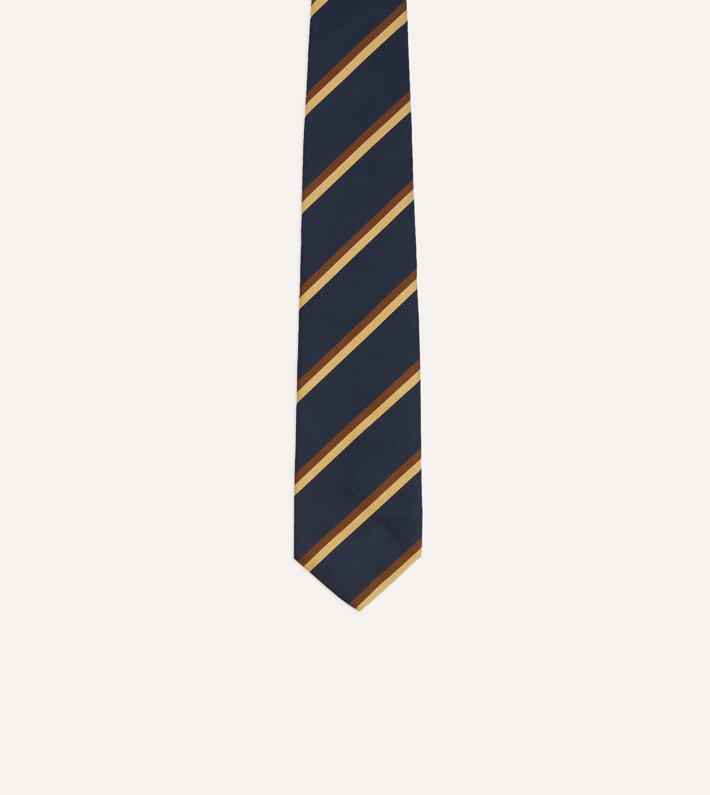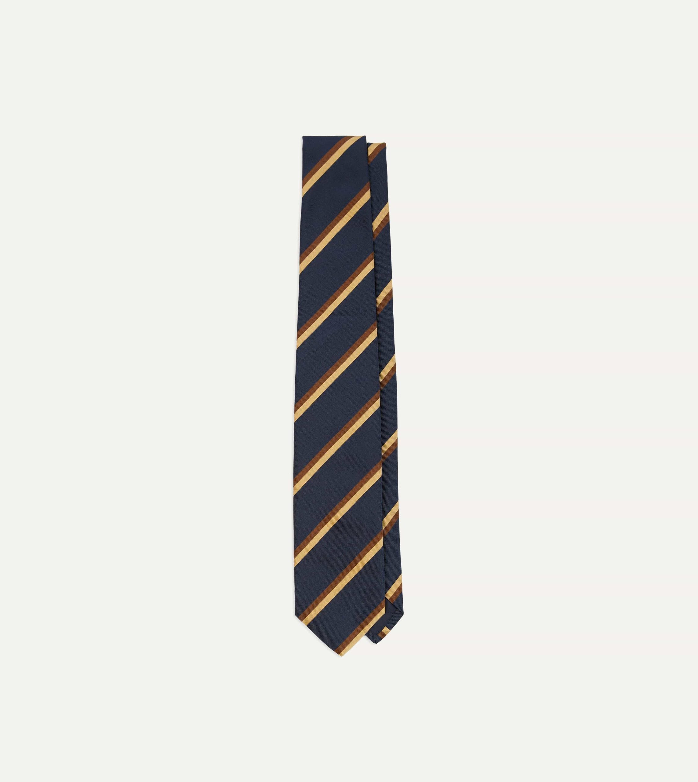 Navy. Gold and Brown Double Stripe Mogador Silk Tipped Tie