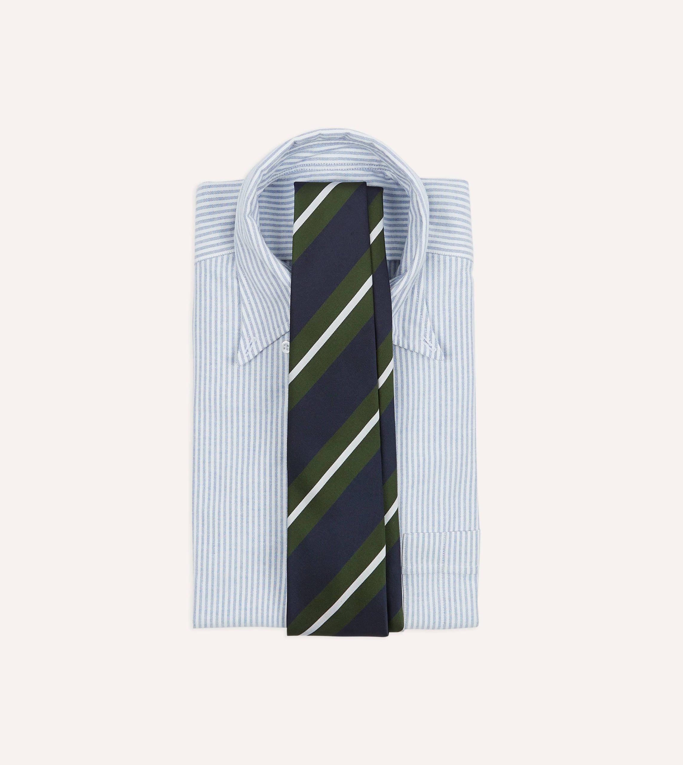 Navy. Green and White Regimental Stripe Mogador Tipped Tie