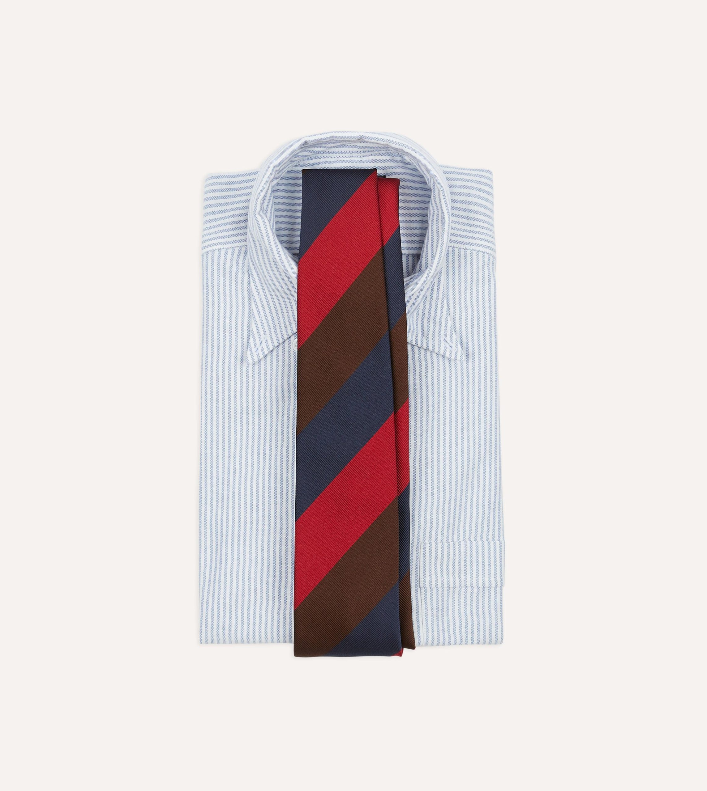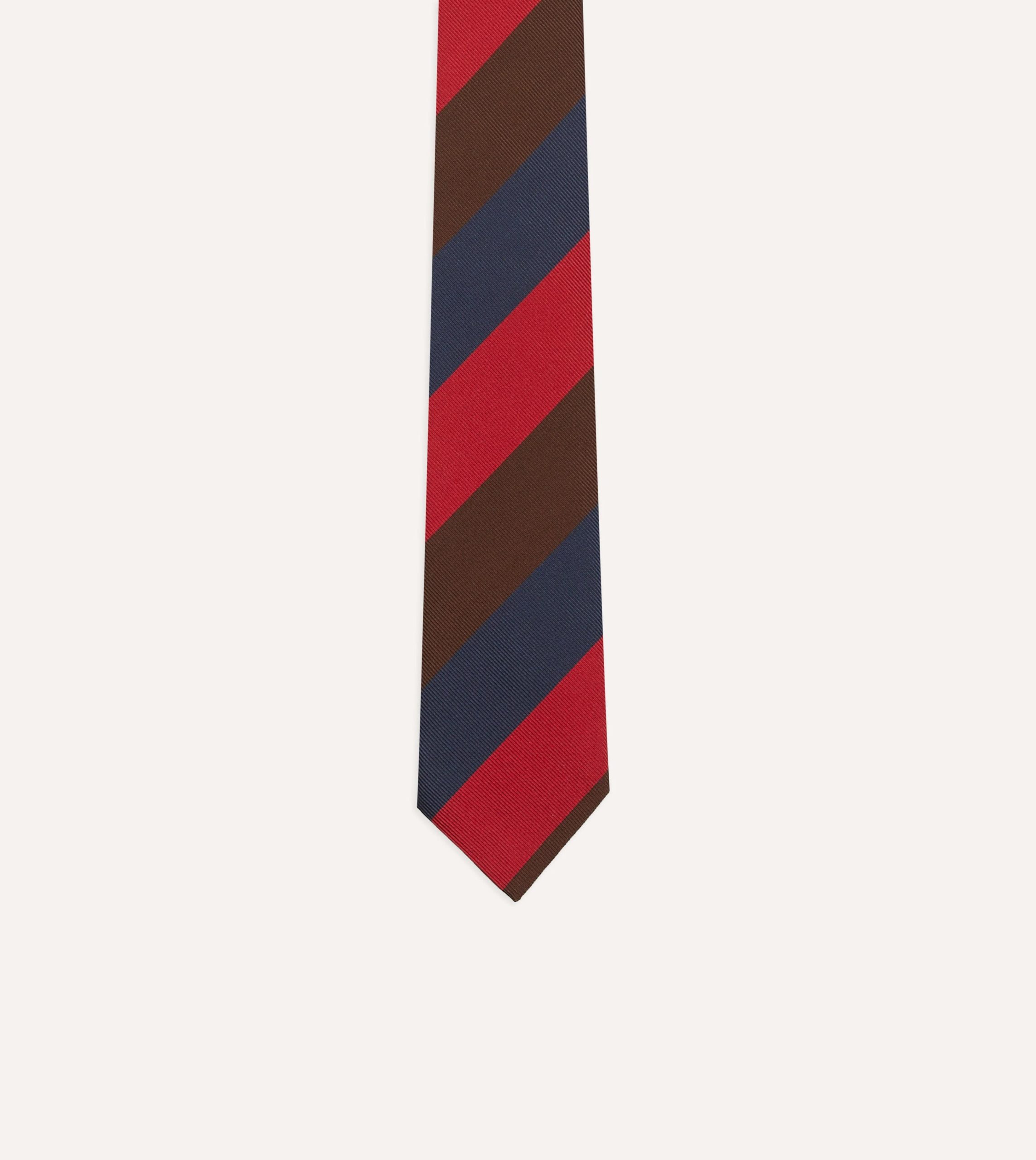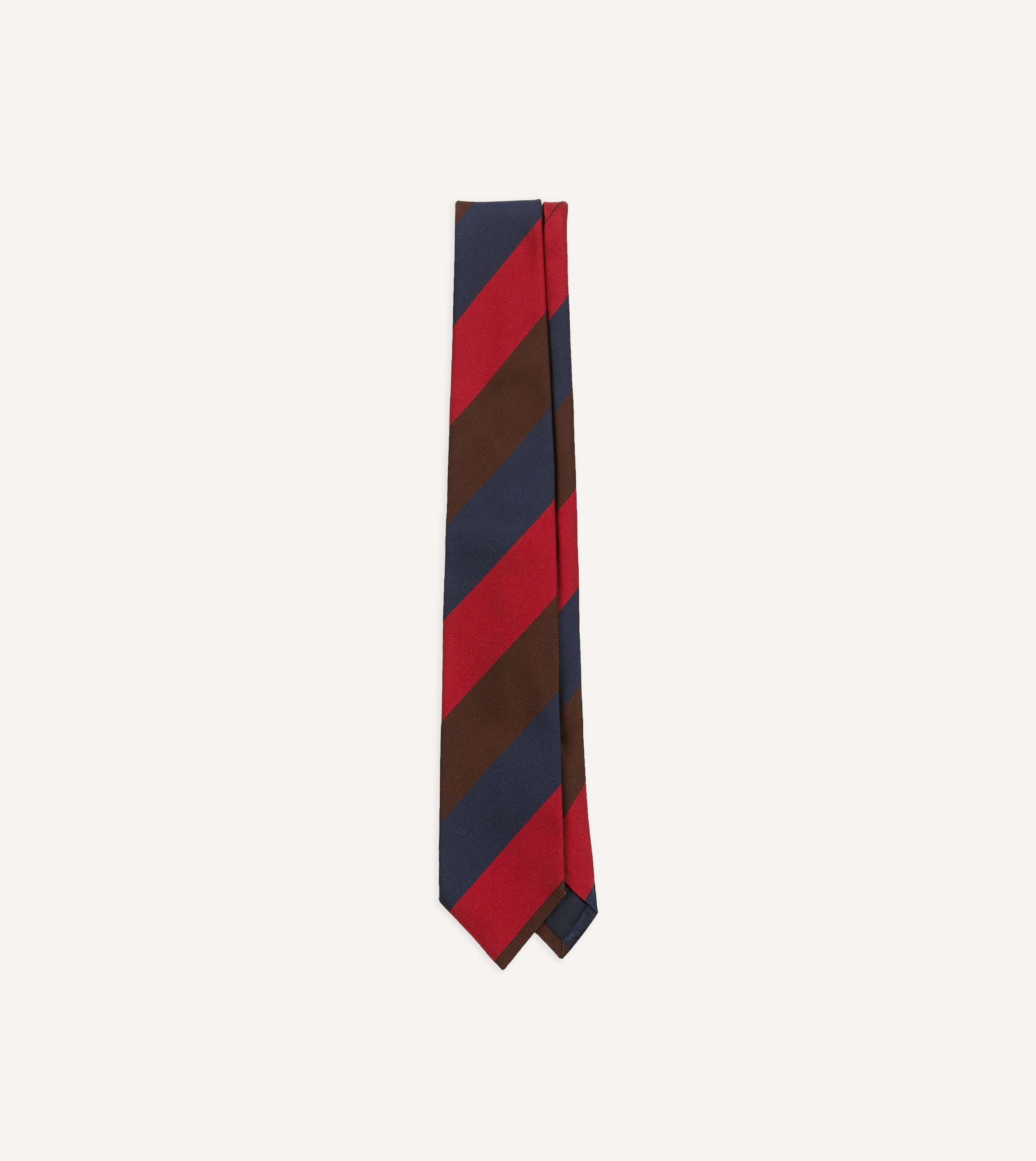 Cut from a beautiful mogador cloth. which blends silk and cotton for a substantial hand and a matte finish. this tie makes an impression with a triple stripe motif.