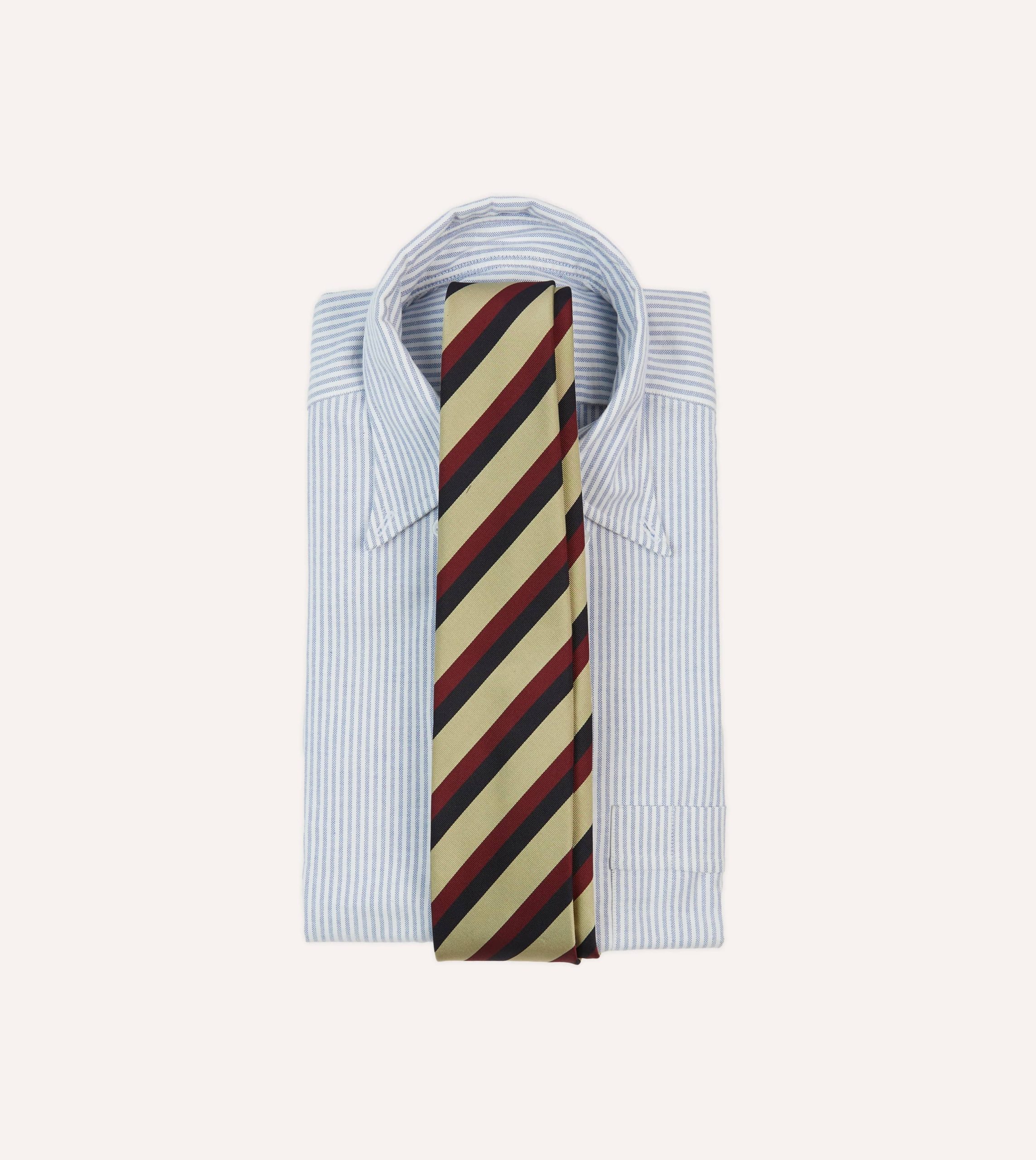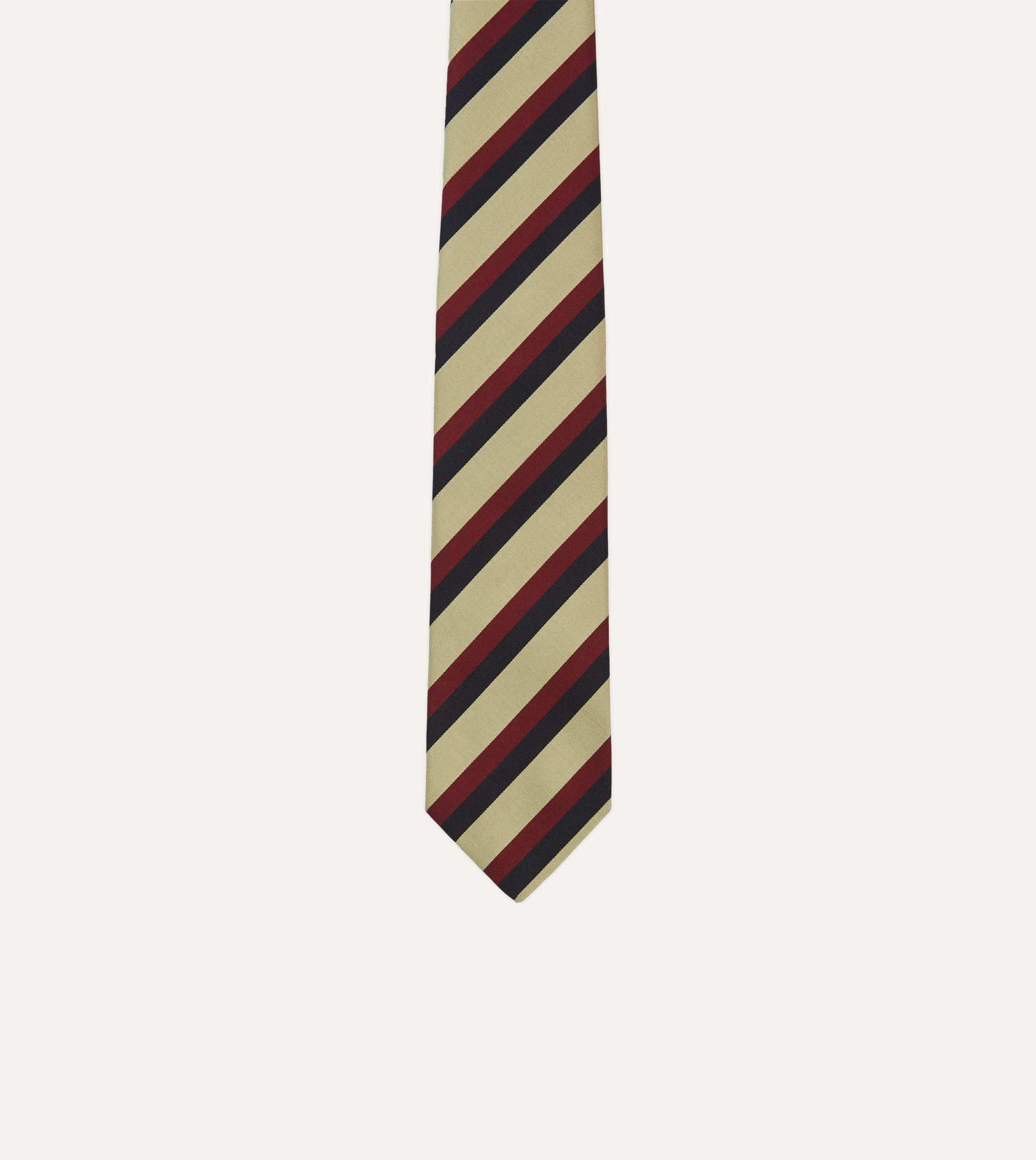 Cut from a beautiful mogador cloth. which blends silk and cotton for a substantial hand and a matte finish. this tie makes an impression with a classic striped motif.