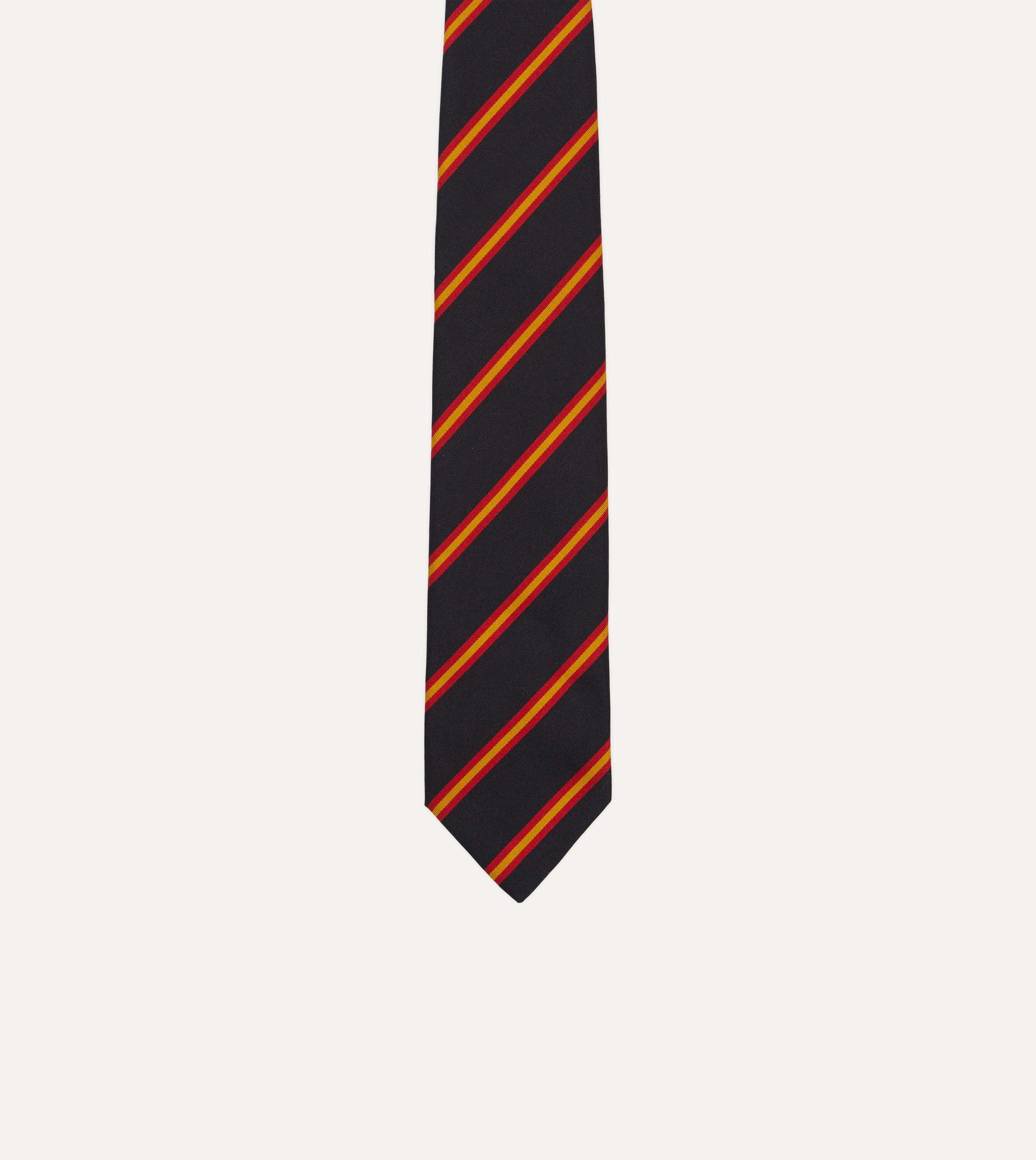 Navy. Red and Gold Sandwich Stripe Mogador Silk Tipped Tie
