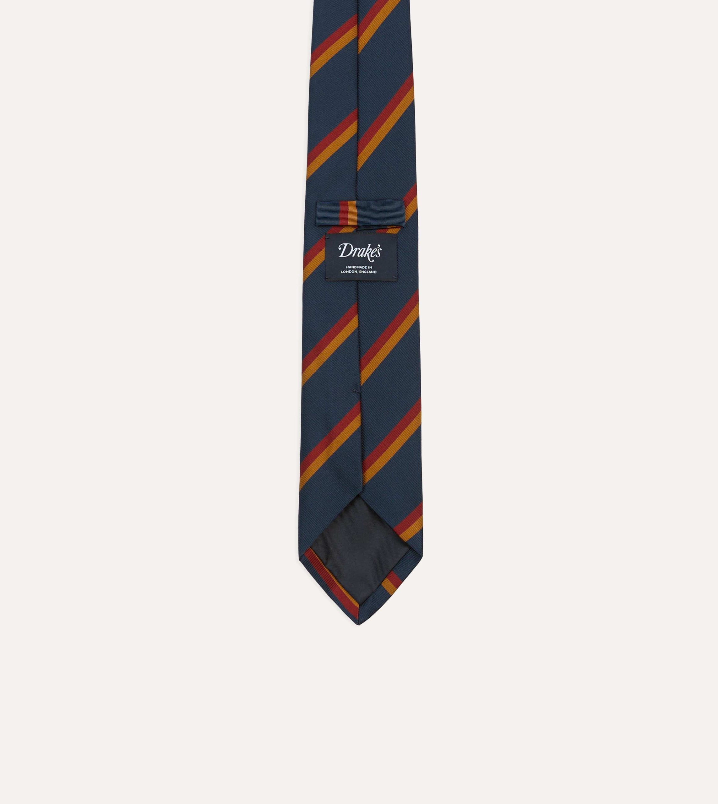 Navy. Red and Gold Stripe Mogador Cotton-Silk Tipped Tie