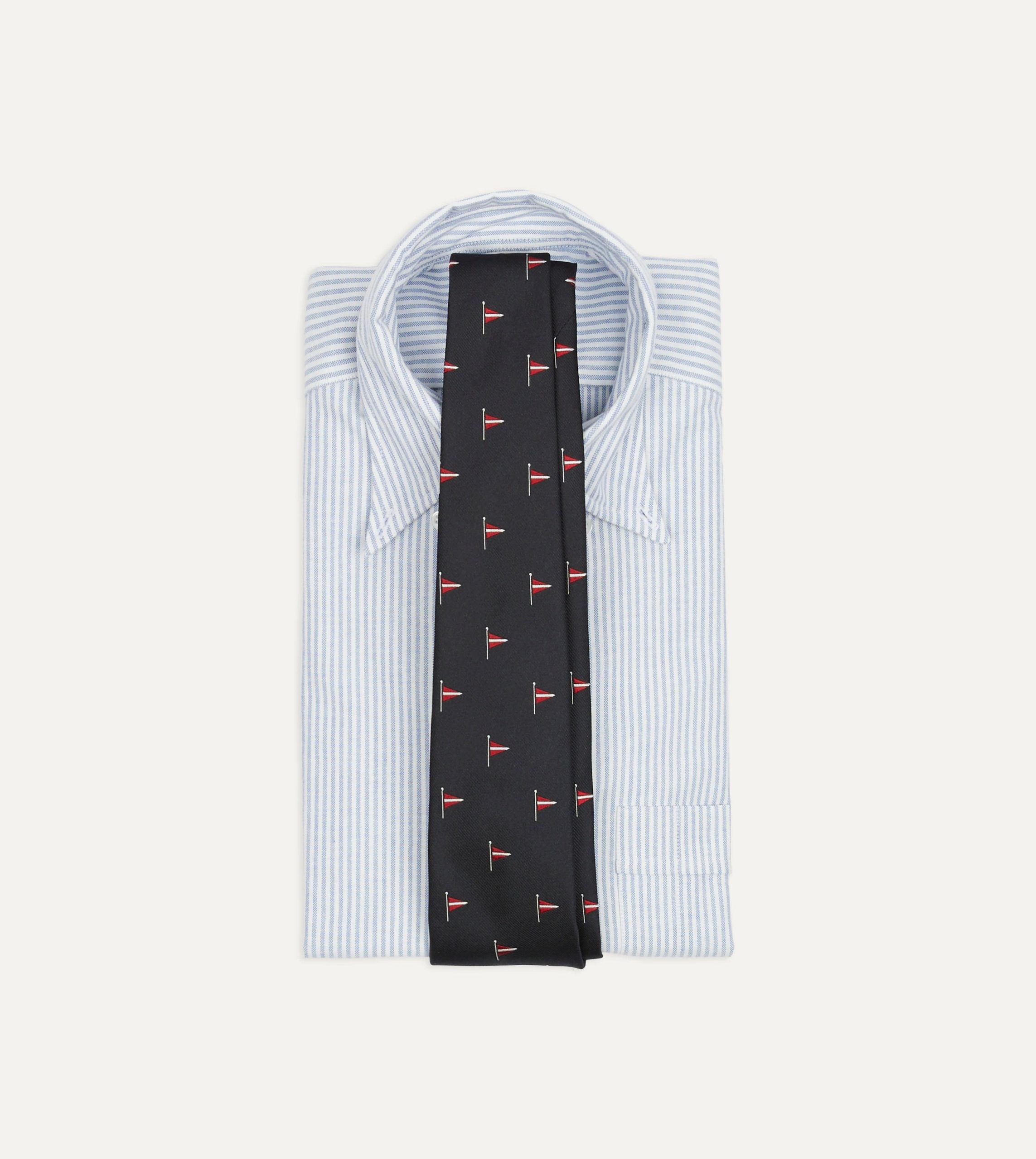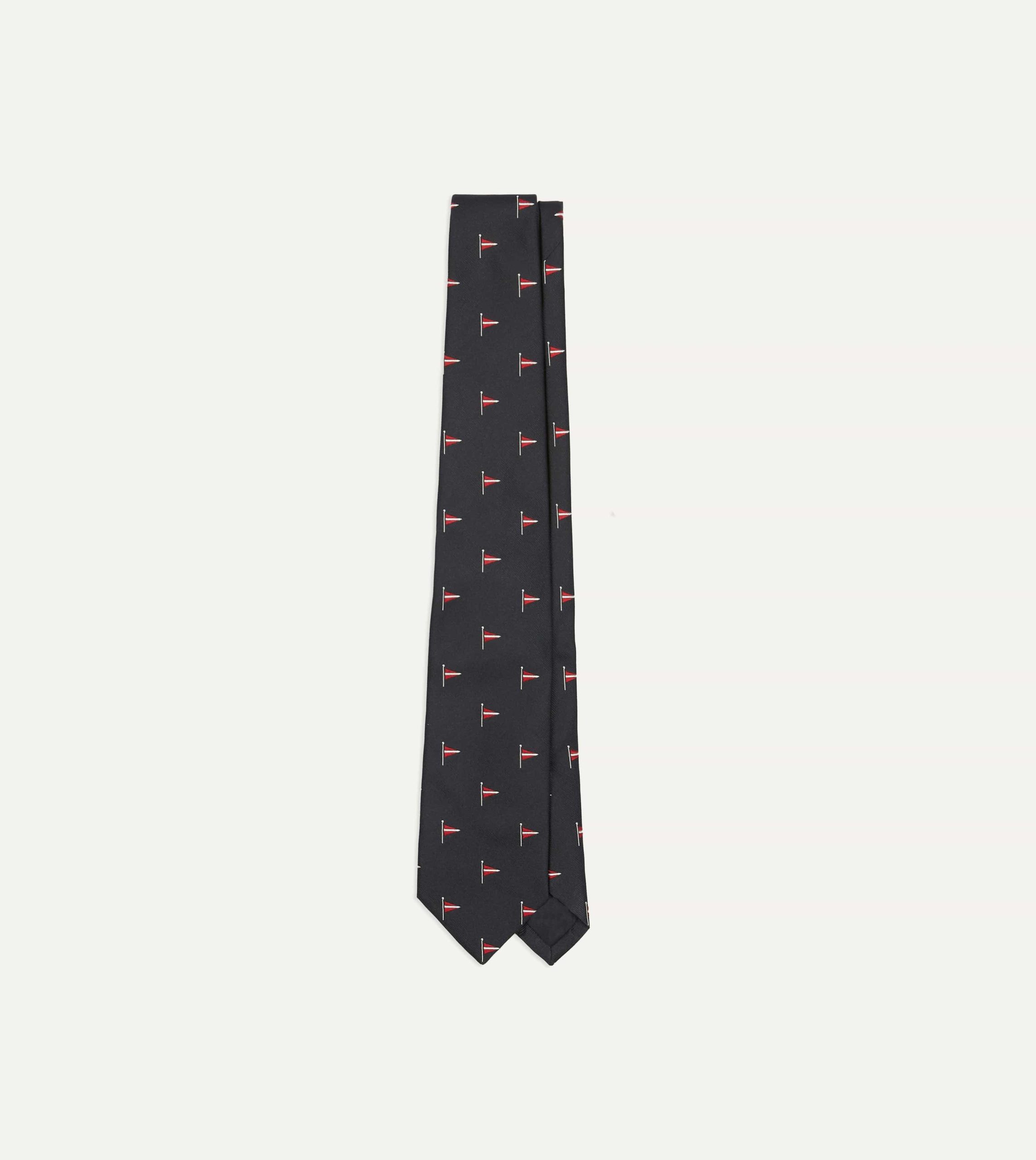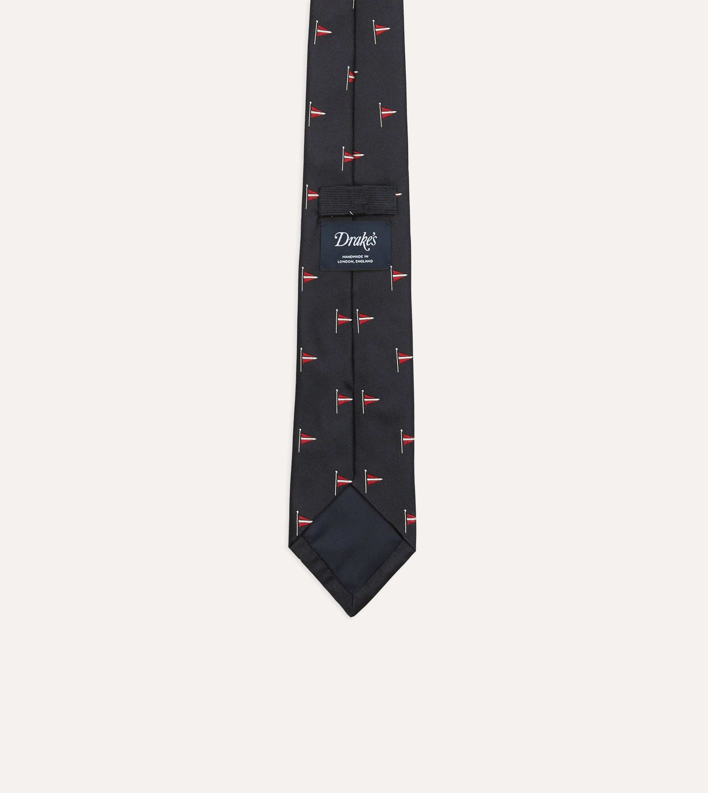 Be the first to review “Navy Red Pennant Motif Silk Tipped Tie”