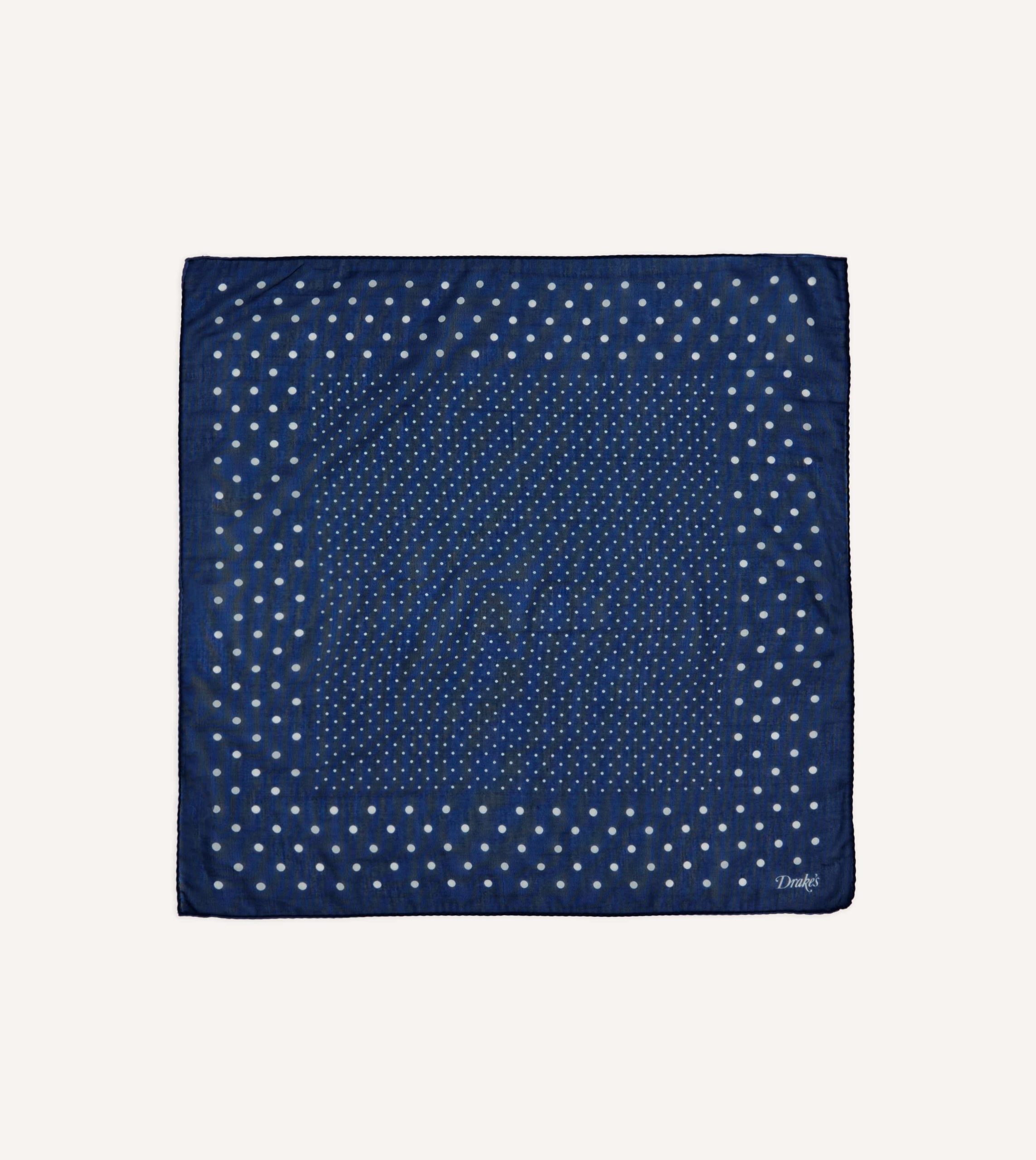 Navy Spot Border Print Cotton-Silk Pocket Square