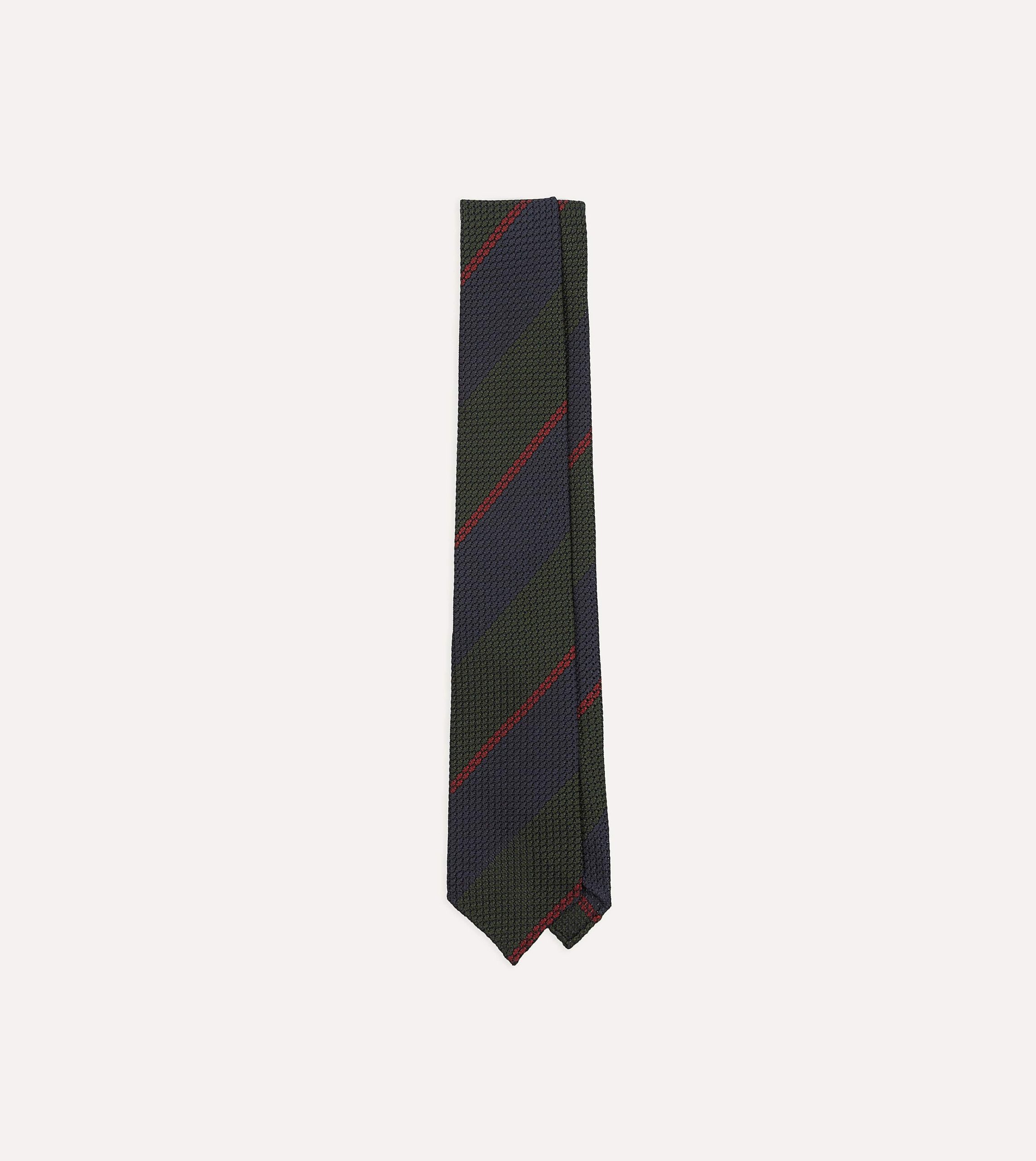 Olive and Red Block Stripe Hand Rolled Silk Grenadine Tie