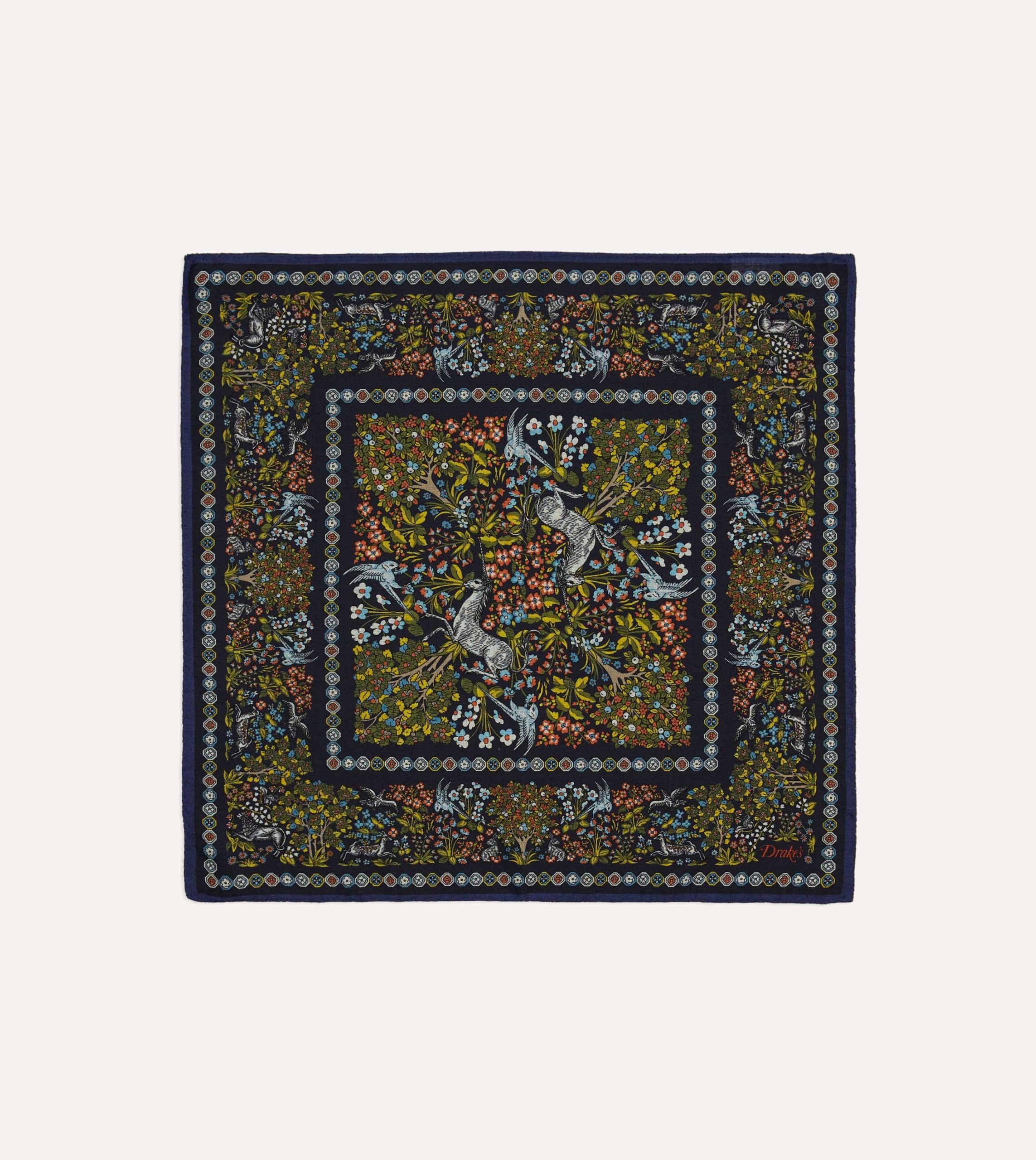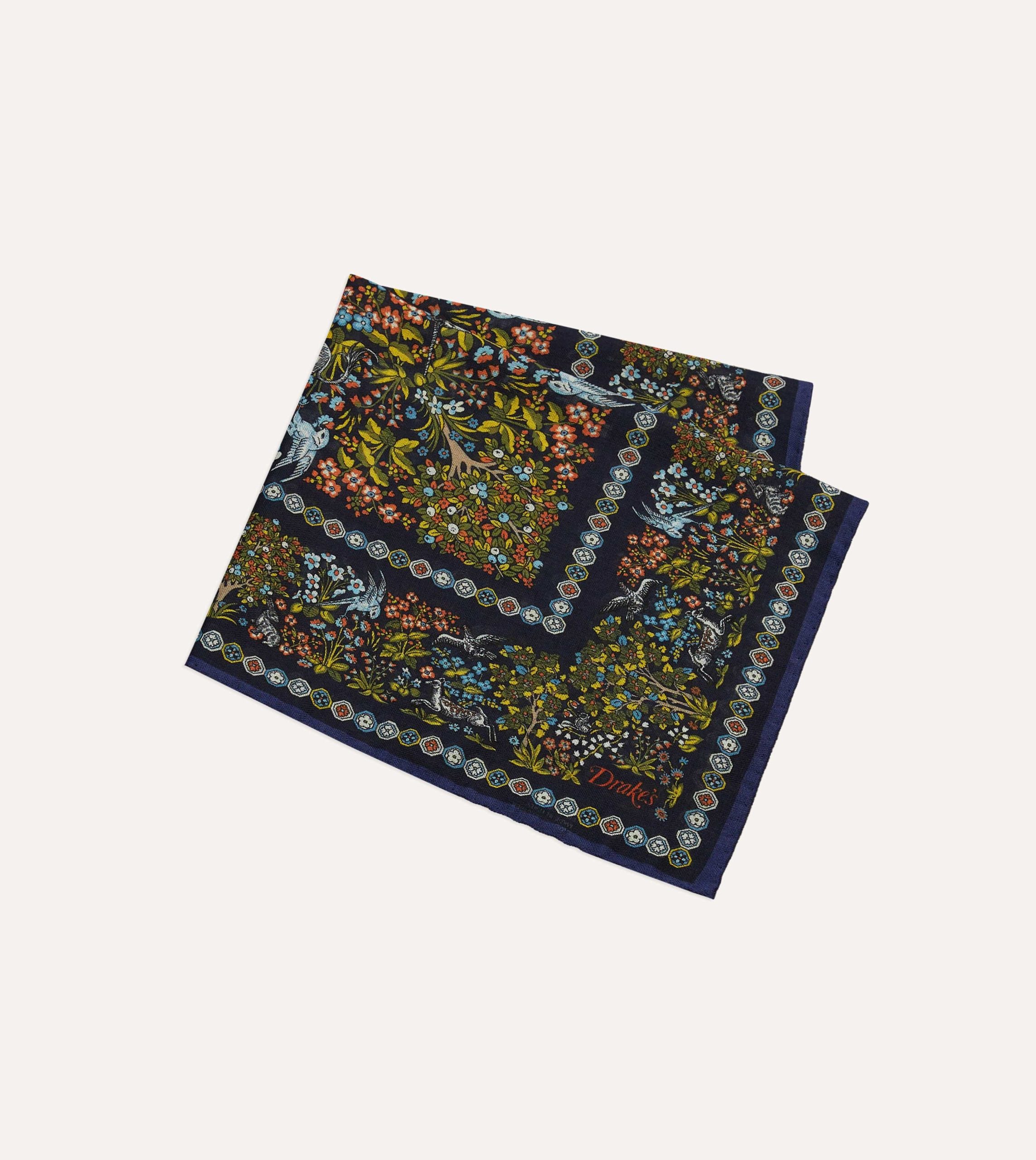 Taken from our extensive design archive. this floral unicorn motif has been vividly applied to a blend of pure wool and silk. perfect for introducing a subtle and sophisticated dash of pattern to one’s ensemble.