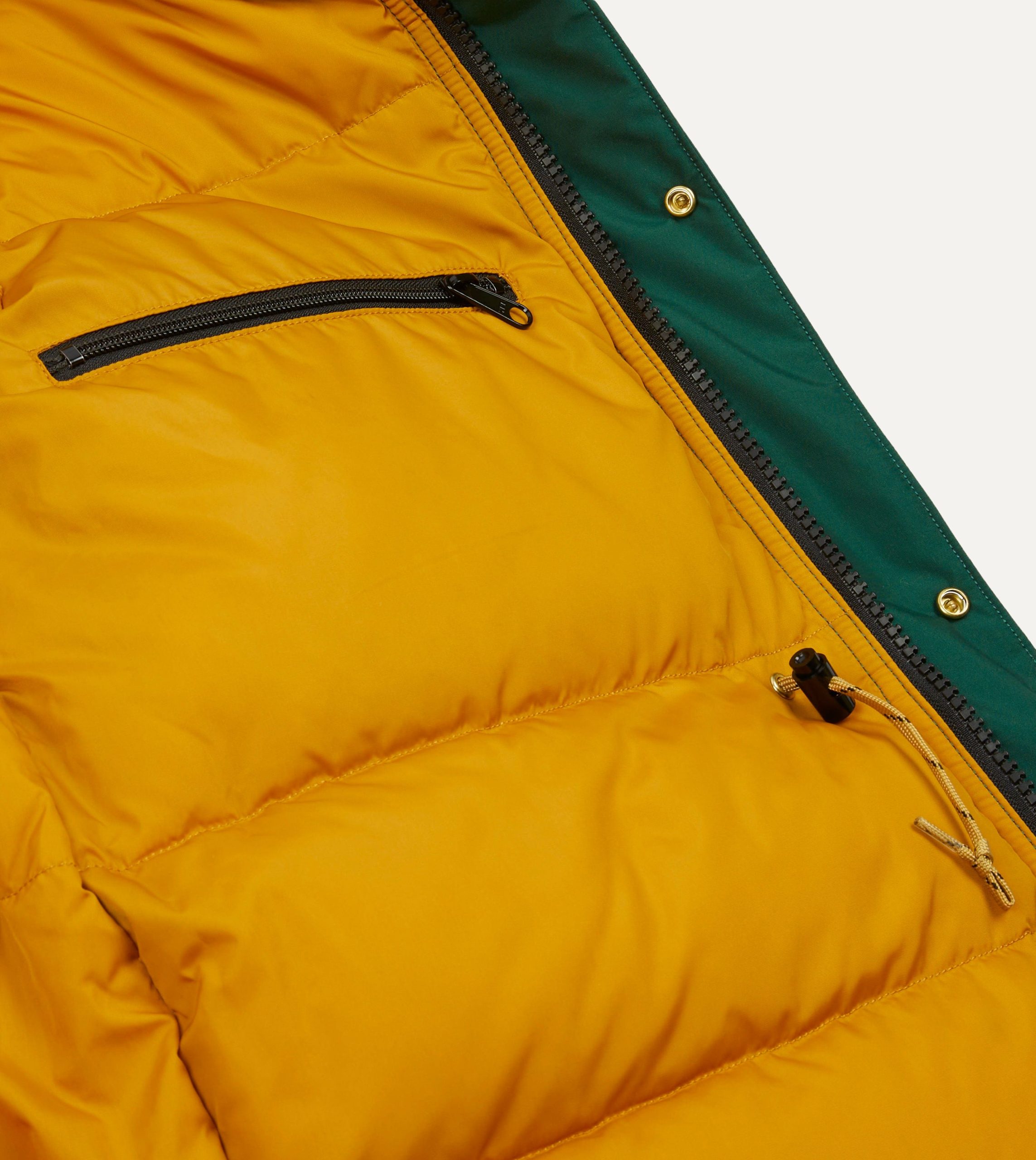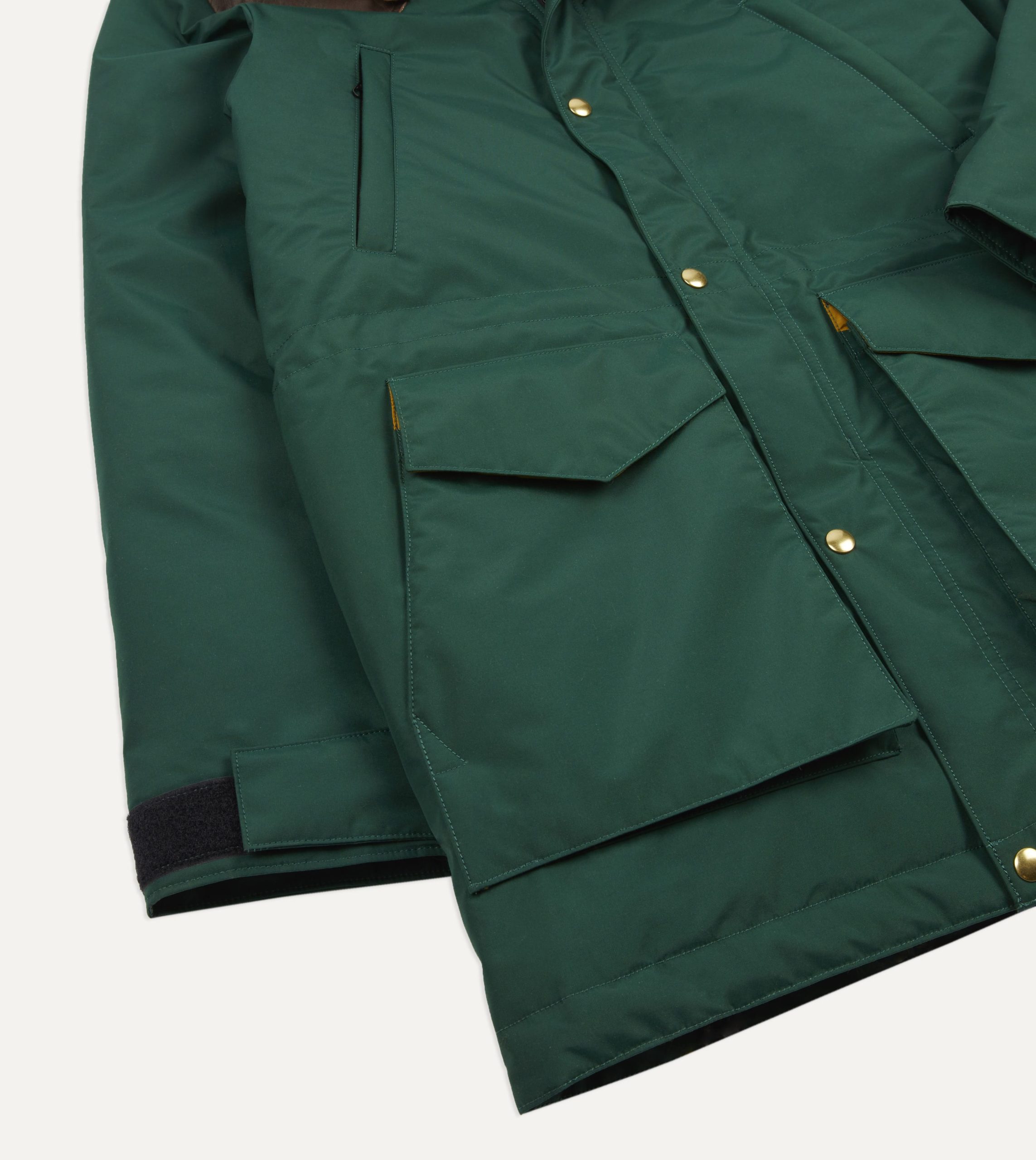 Decades of research have resulted in a specially created 70 Denier nylon shell. which is as durable as it is lightweight. Finished with snap buttons. the Heritage Down Mountain Parka is rugged Americana through a discerning Japanese lens.