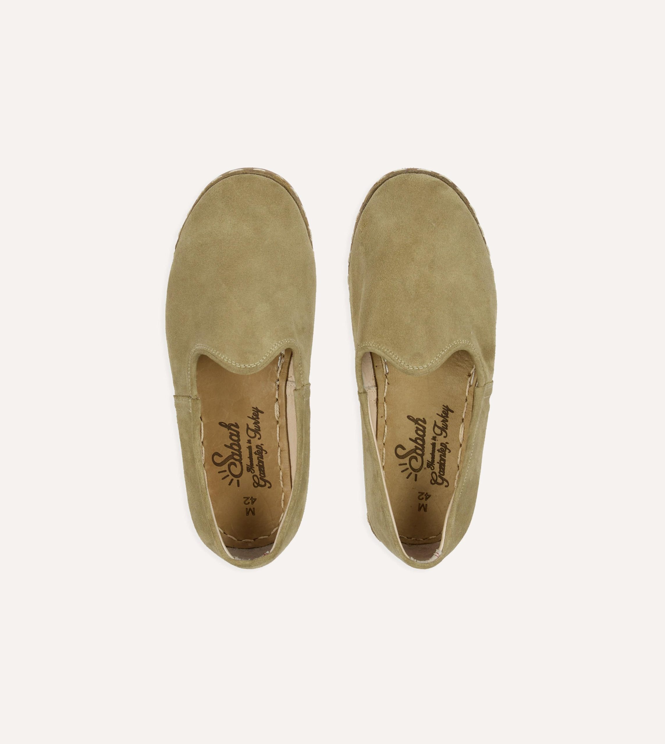 Crafted by hand in the their workshop in Gaziantep. Turkey. Sabah footwear offers a true everyday companion – unfussy. enduring. and effortlessly stylish. Cut from a soft suede produced in Istanbul. each pair develops a distinct patina over time. softening beautifully with wear and age.